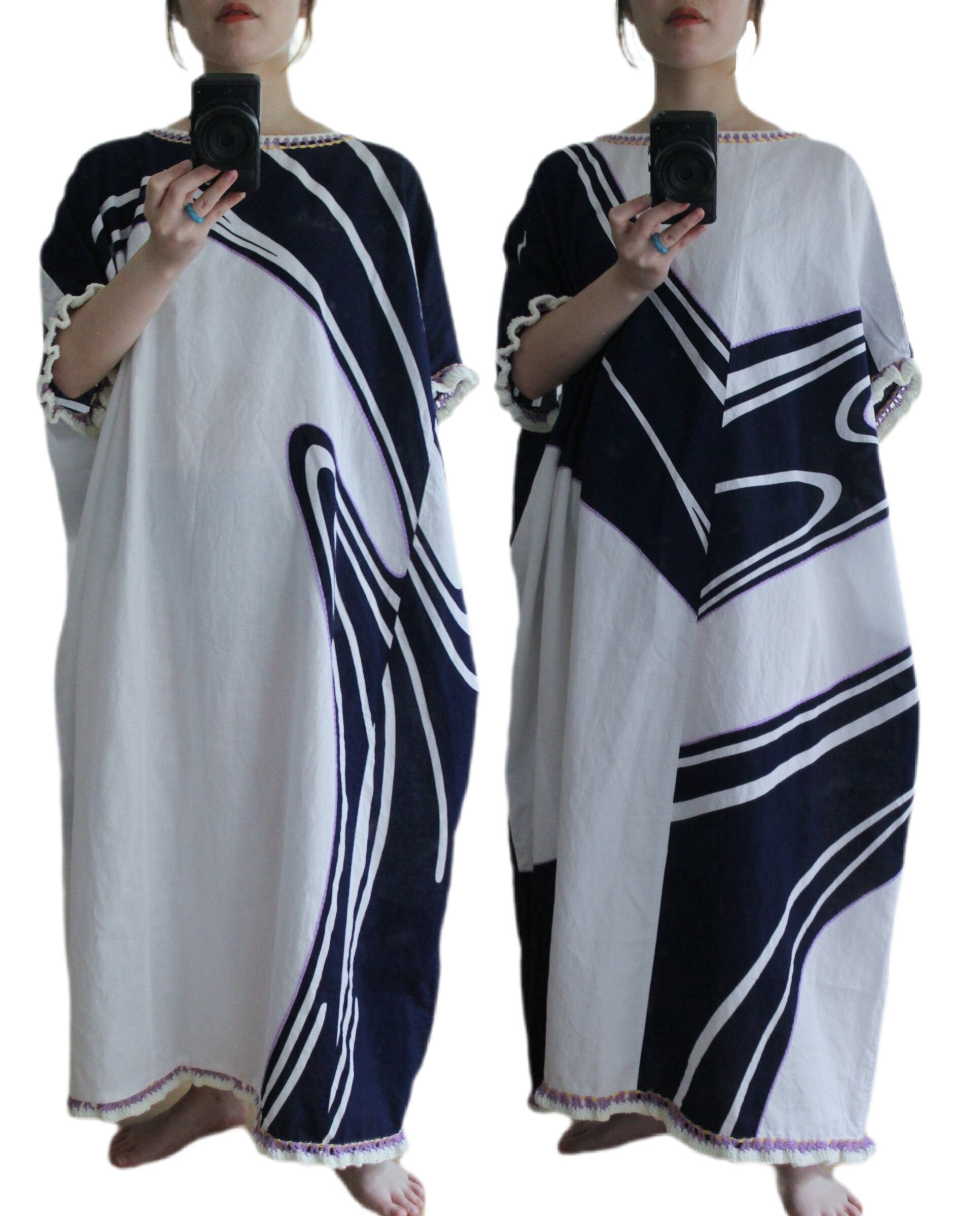大胆な浴衣の和柄に、ネオンカラーの糸を装飾した現代的な和ワンピース◎