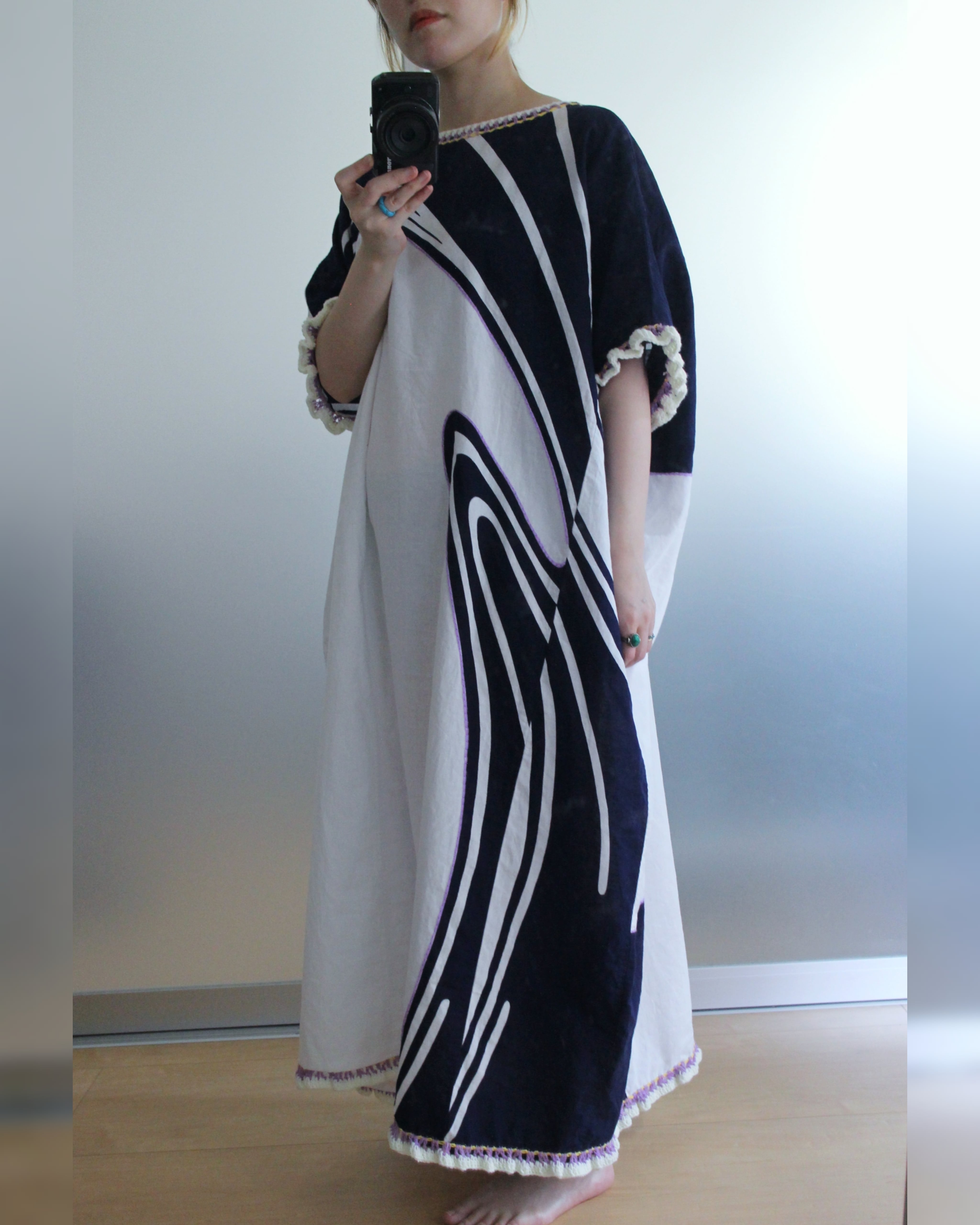 ゆったりと着れて、一着で存在感あるデザインです。一点物です。