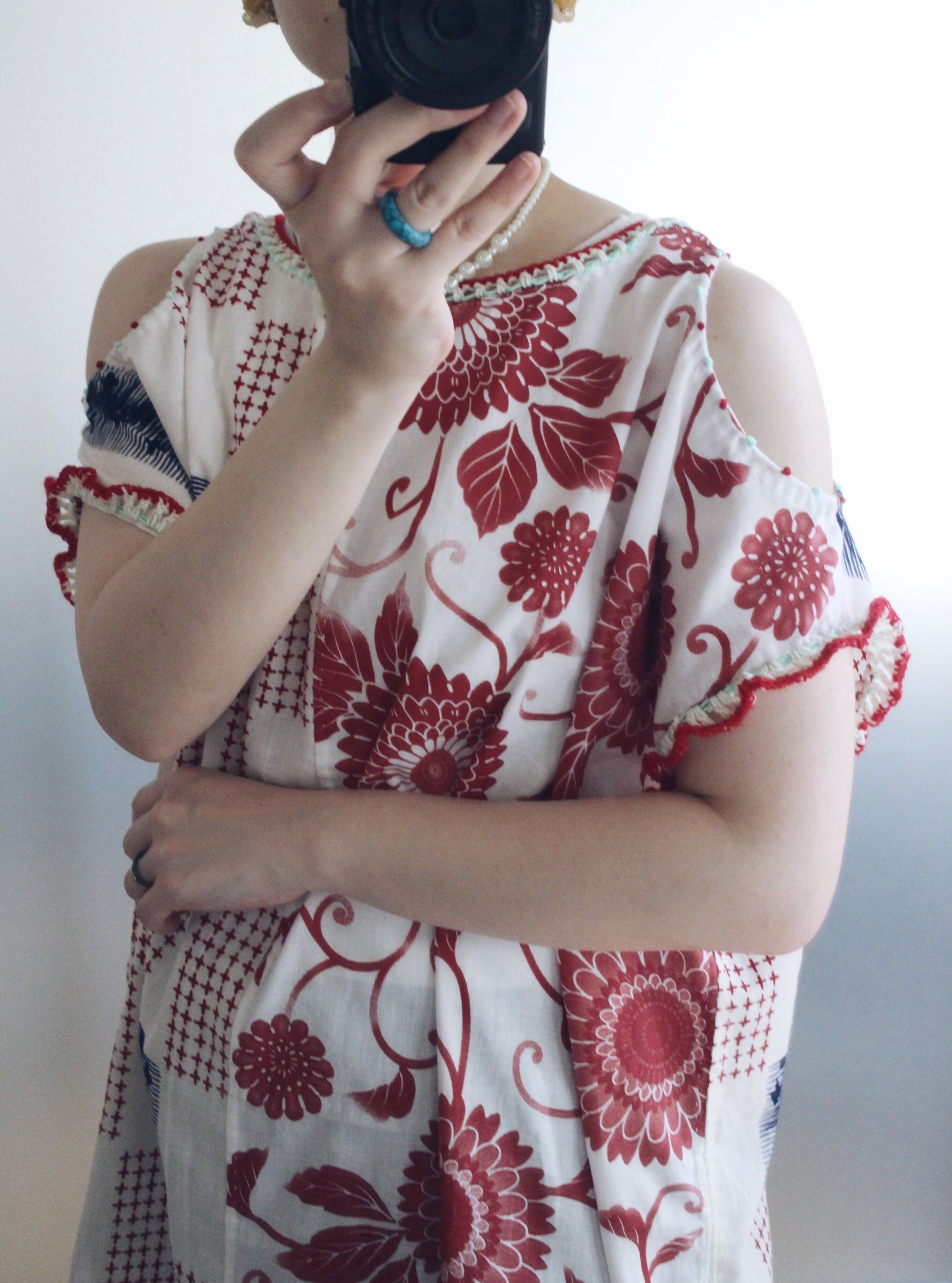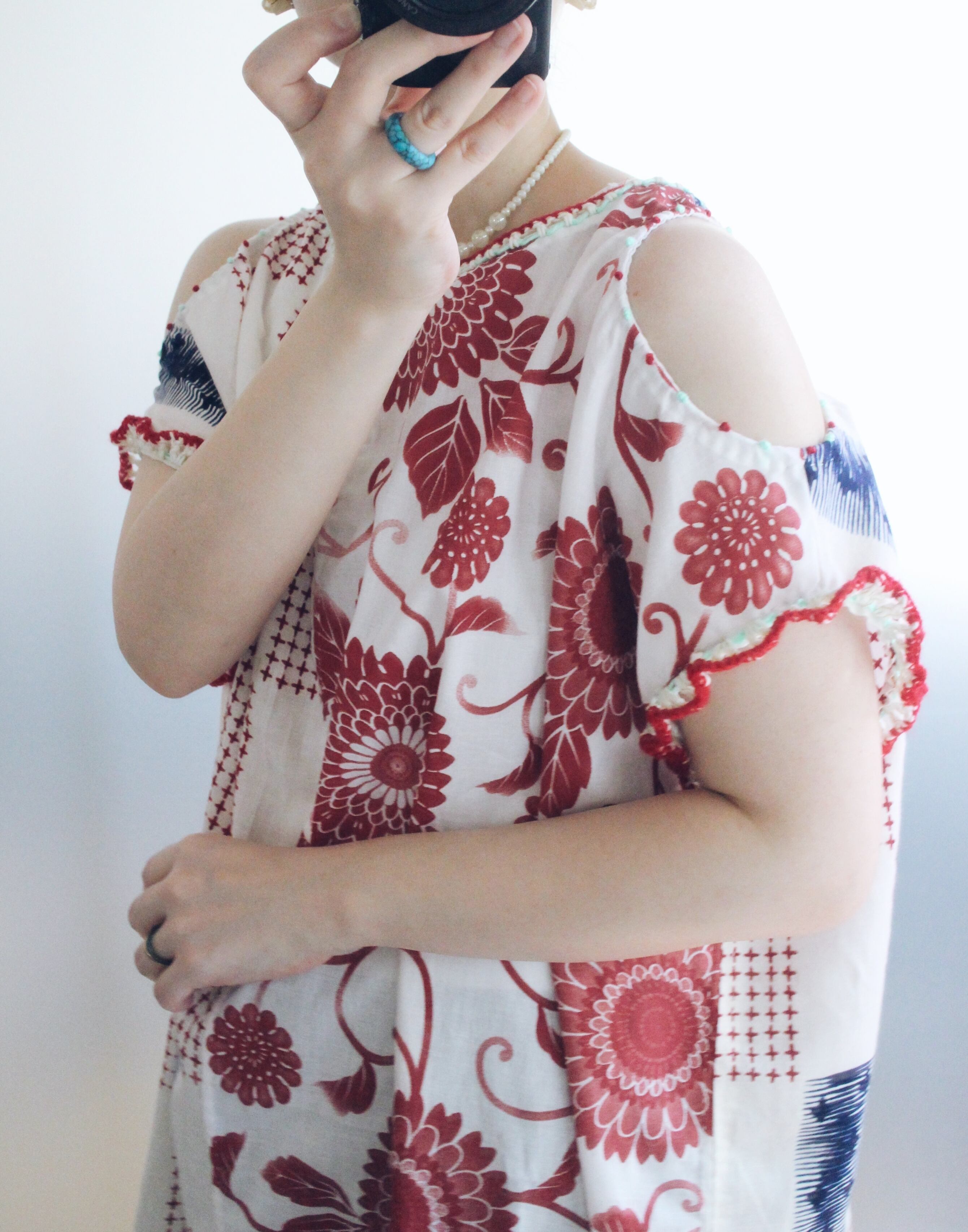 YUKATA FABRIC/OFF SHOULDER DRESS