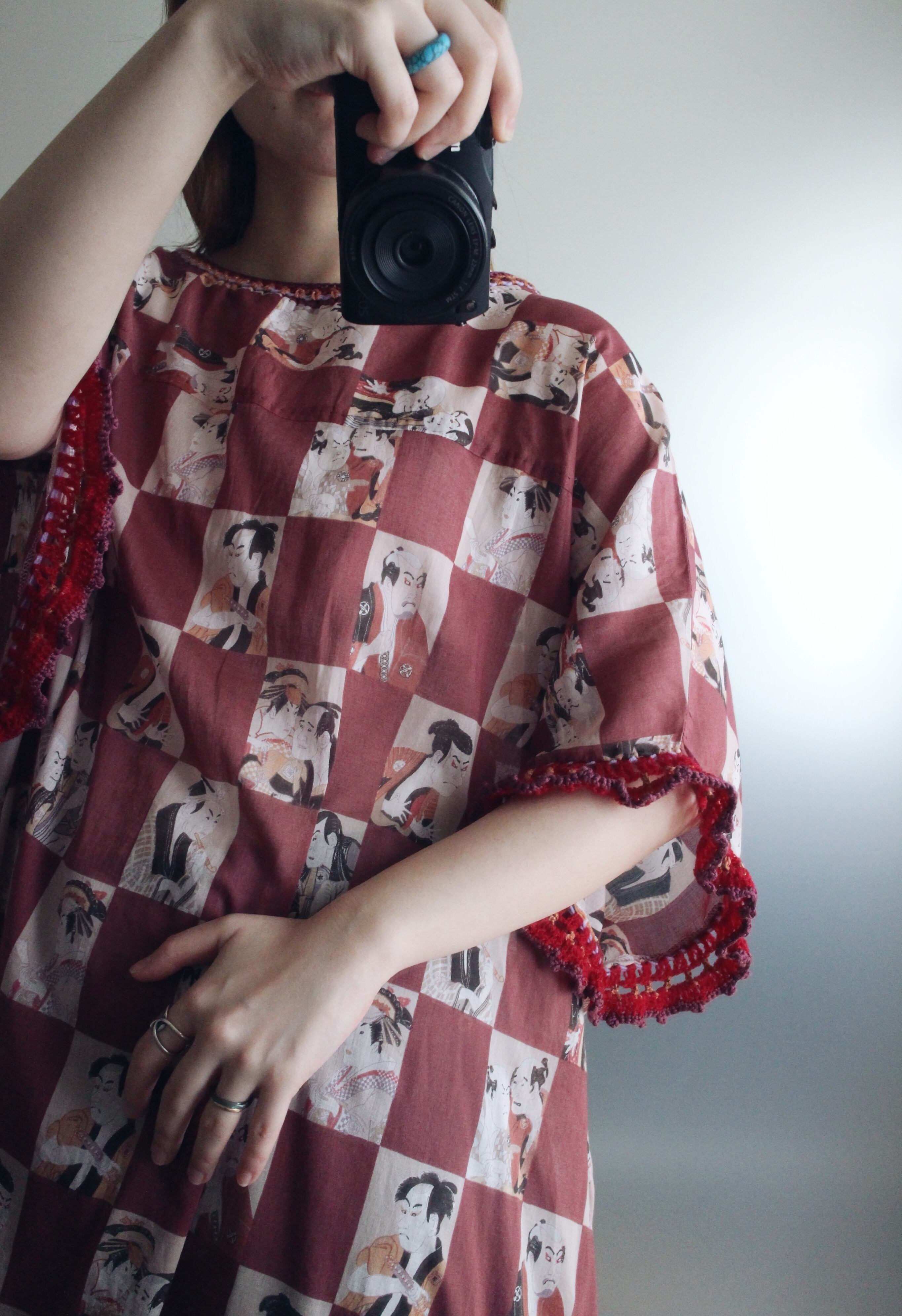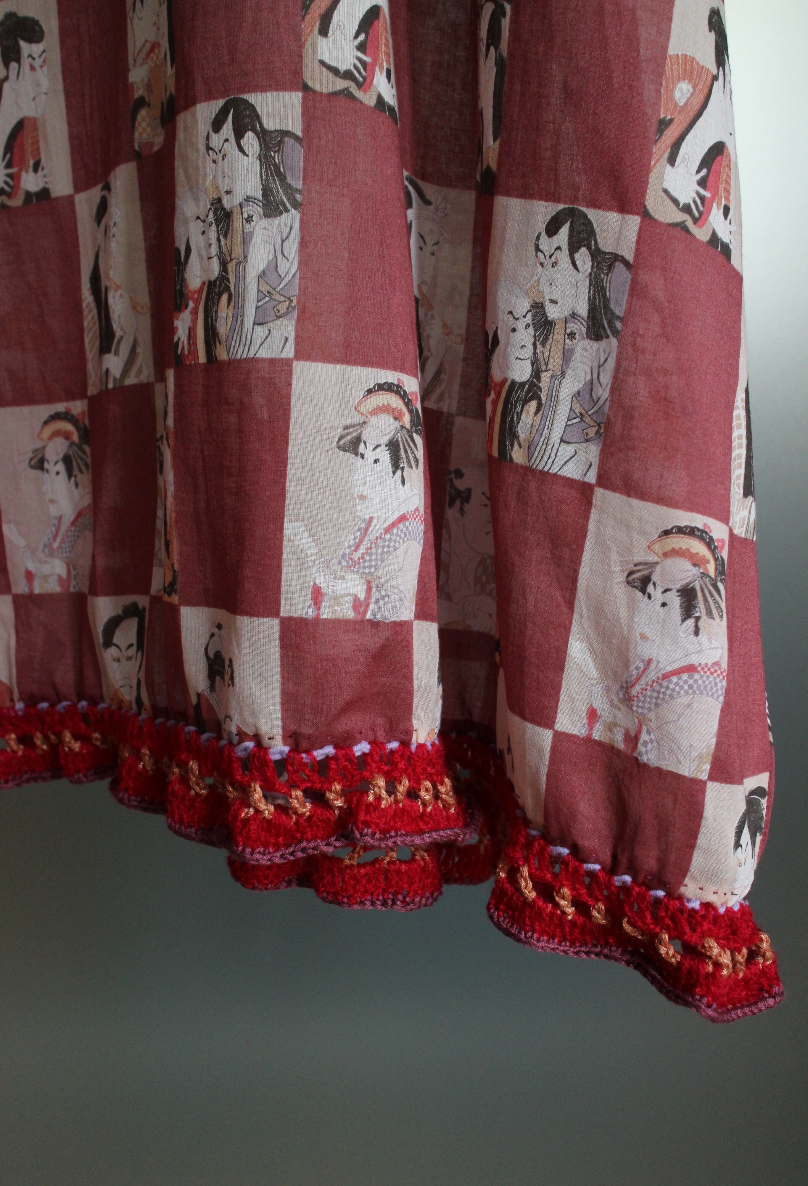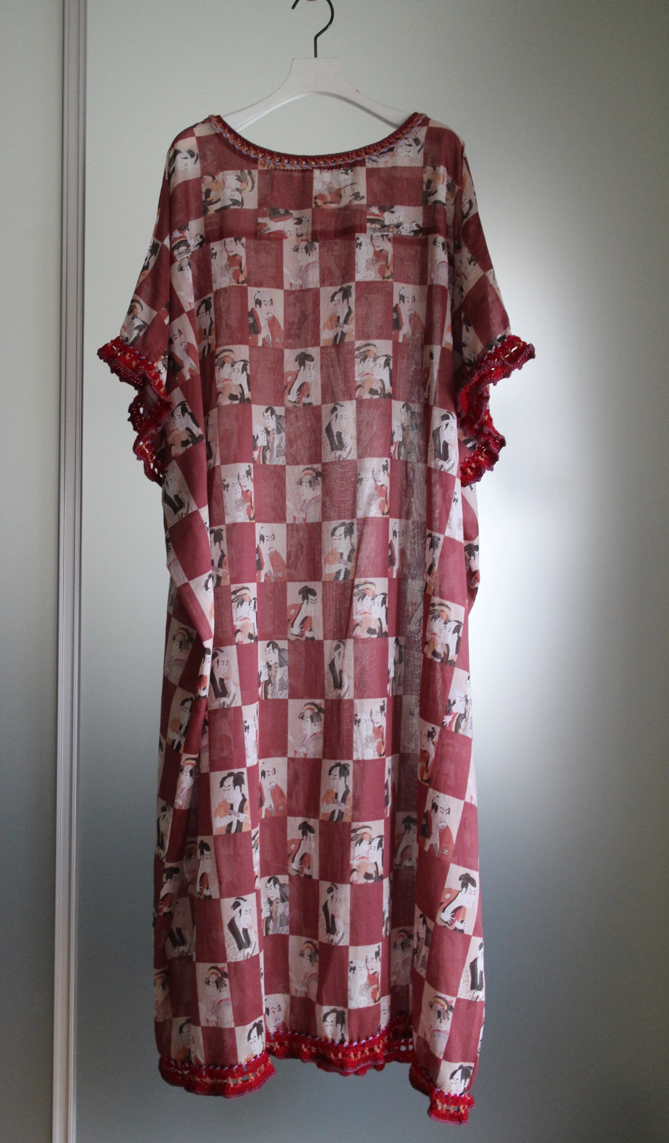 薄手の浮世絵柄の生地に装飾した現代的な和ワンピース◎