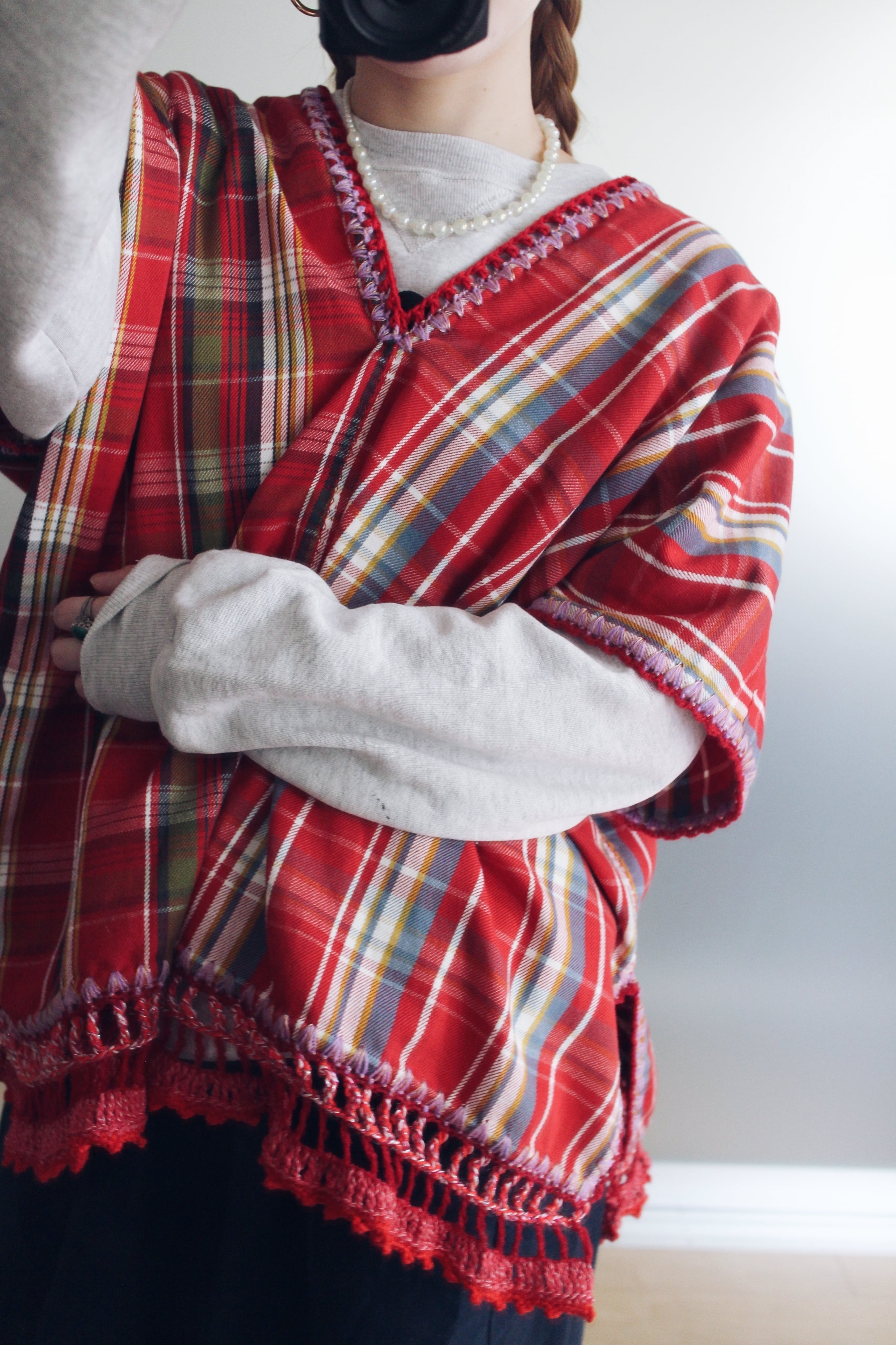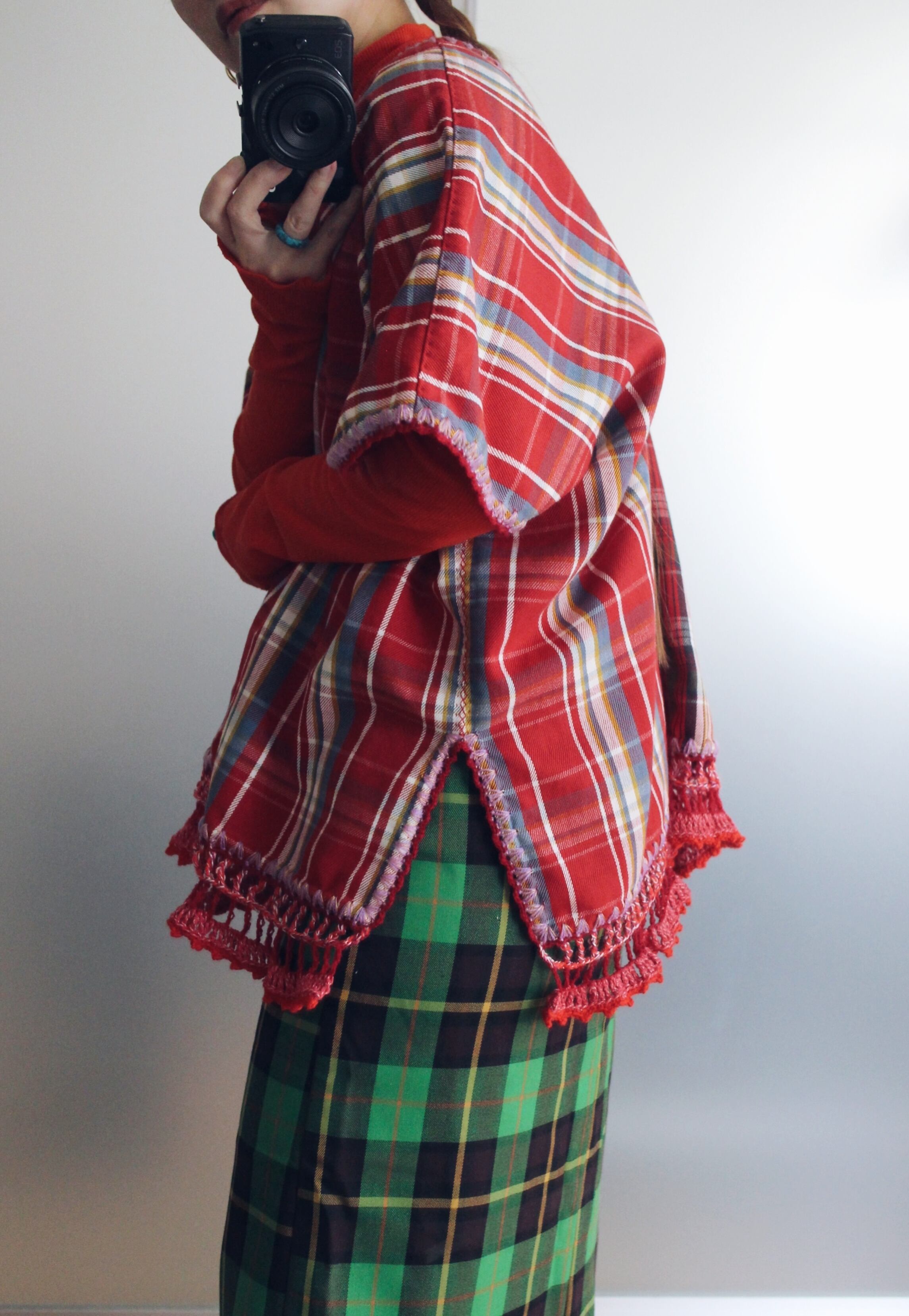 民族衣装からインスピレーションを受けた、チェック柄の貫頭衣。