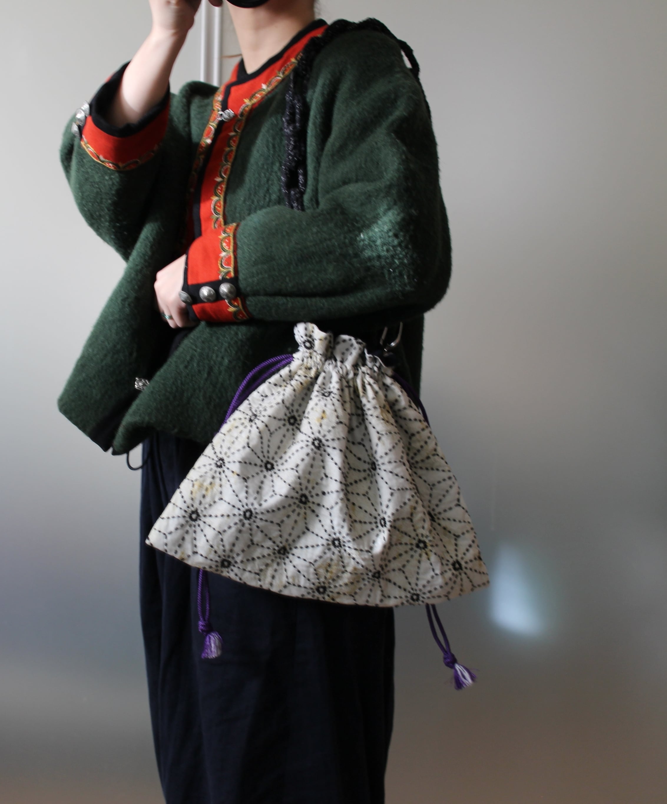 ※ 巾着バッグに付いているチェーン風のハンドルは 別売り です。