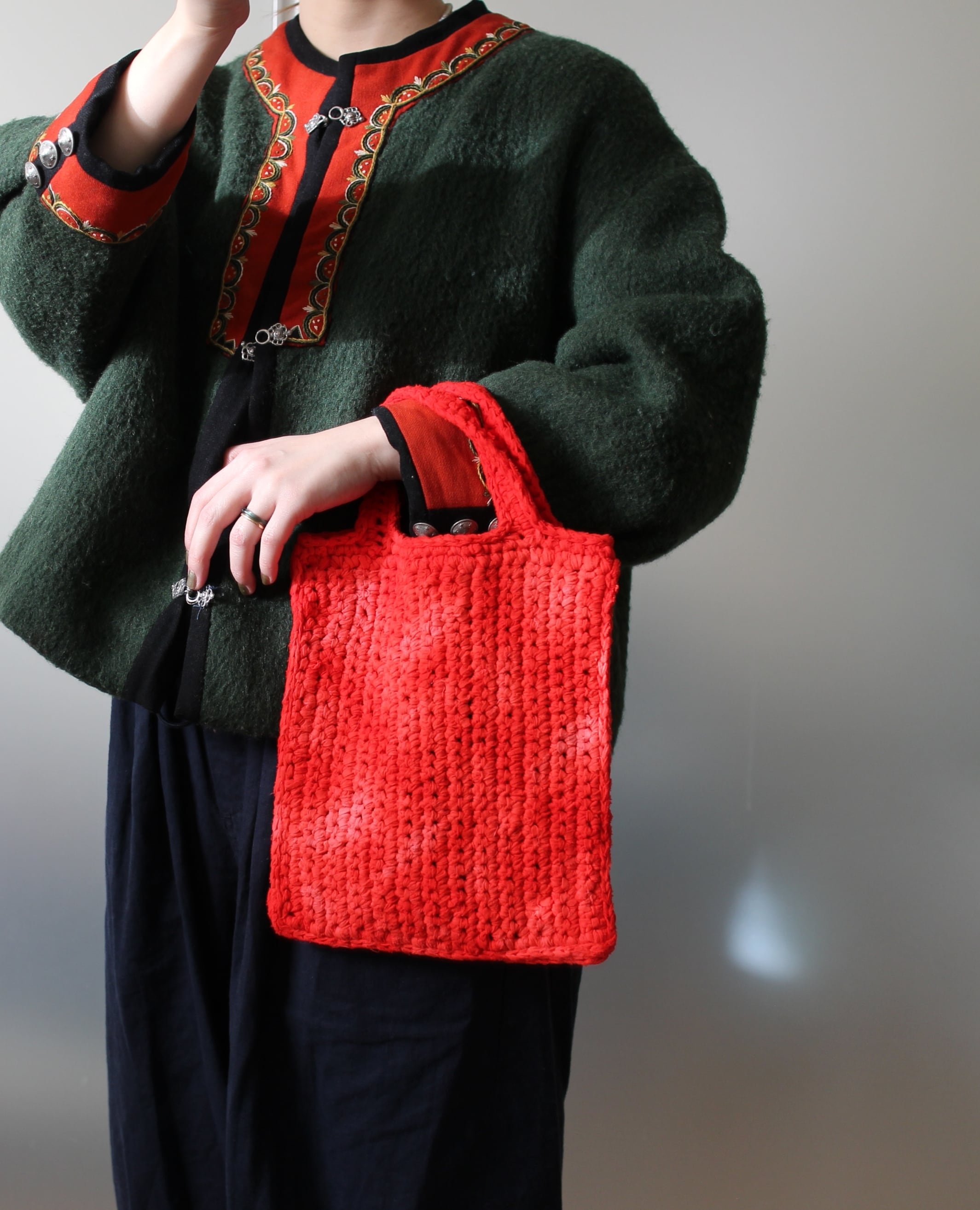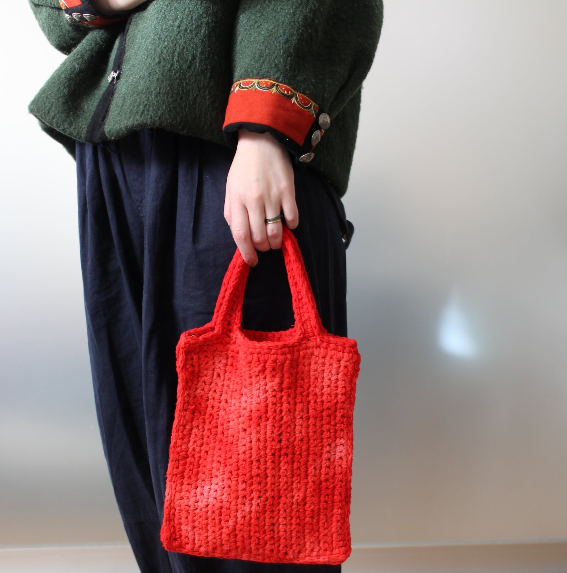 手作業で編み上げたバッグです。