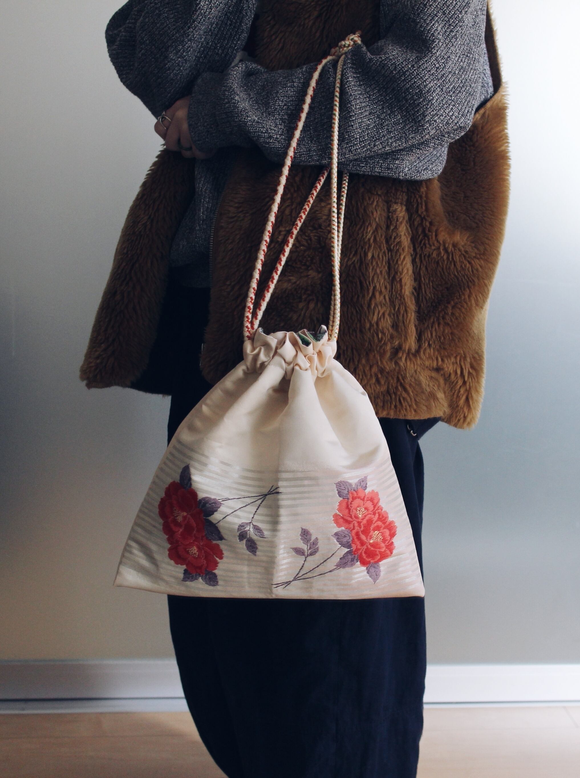 ※ 巾着バッグに付いているチェーン風のハンドルは 別売り です。