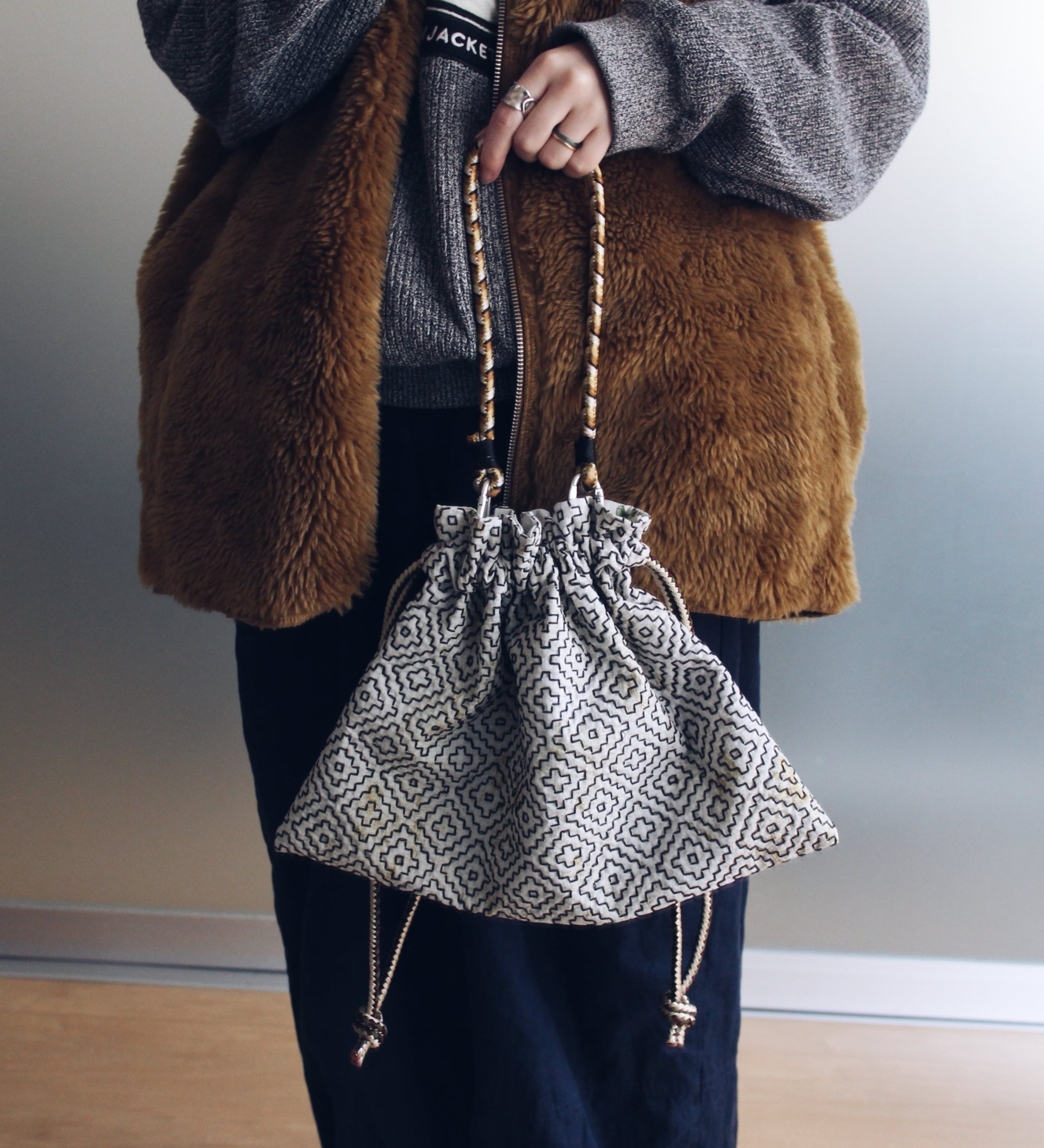 巾着バッグと組み合わせて、