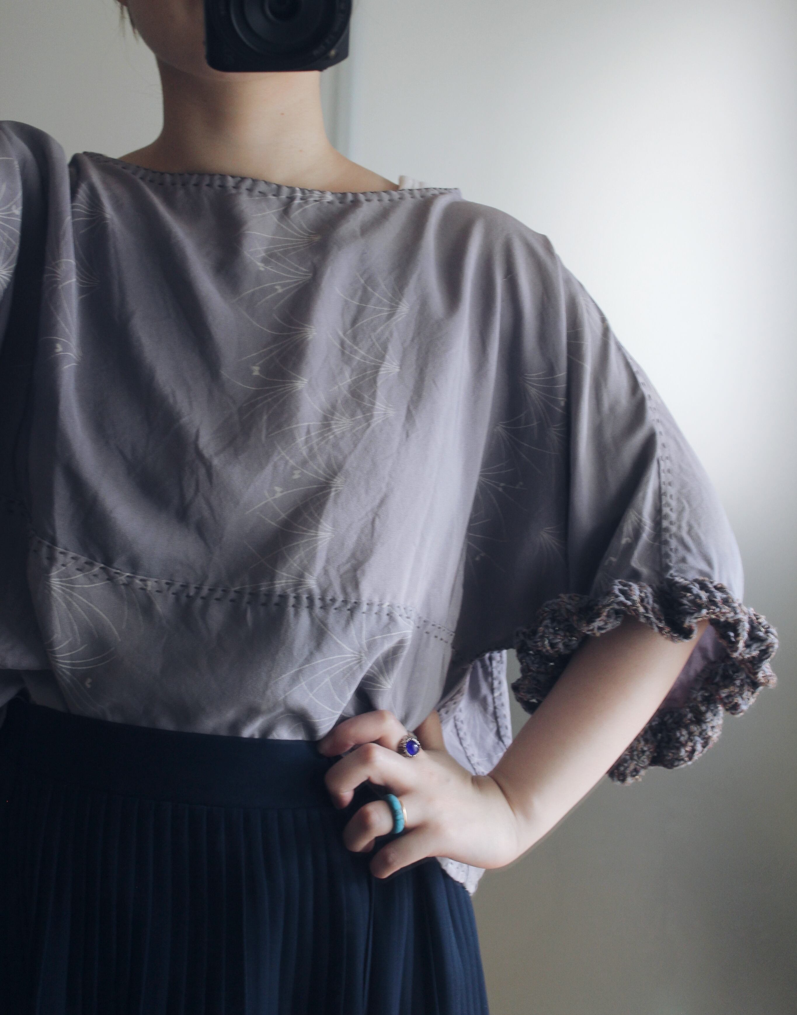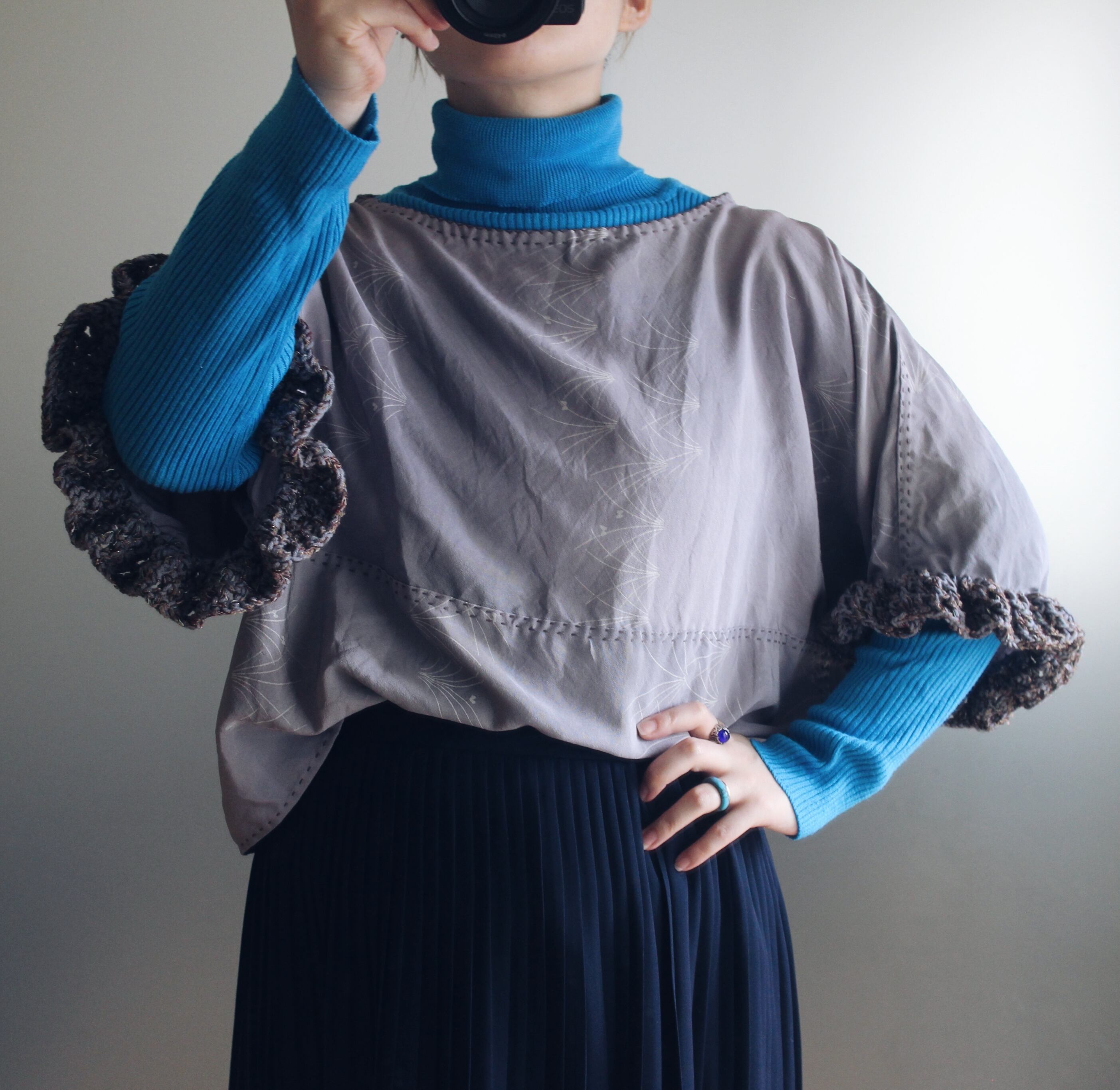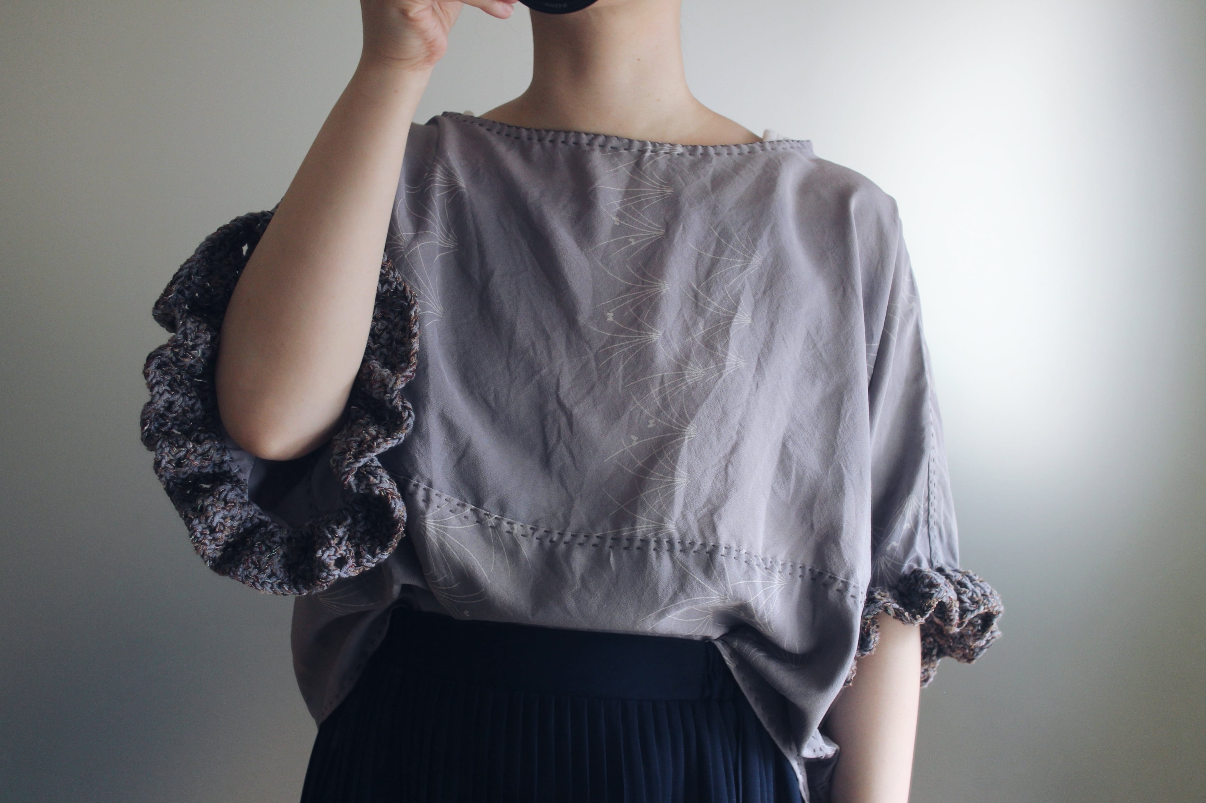 ヴィンテージの羽織生地で製作したリメイクブラウスです。