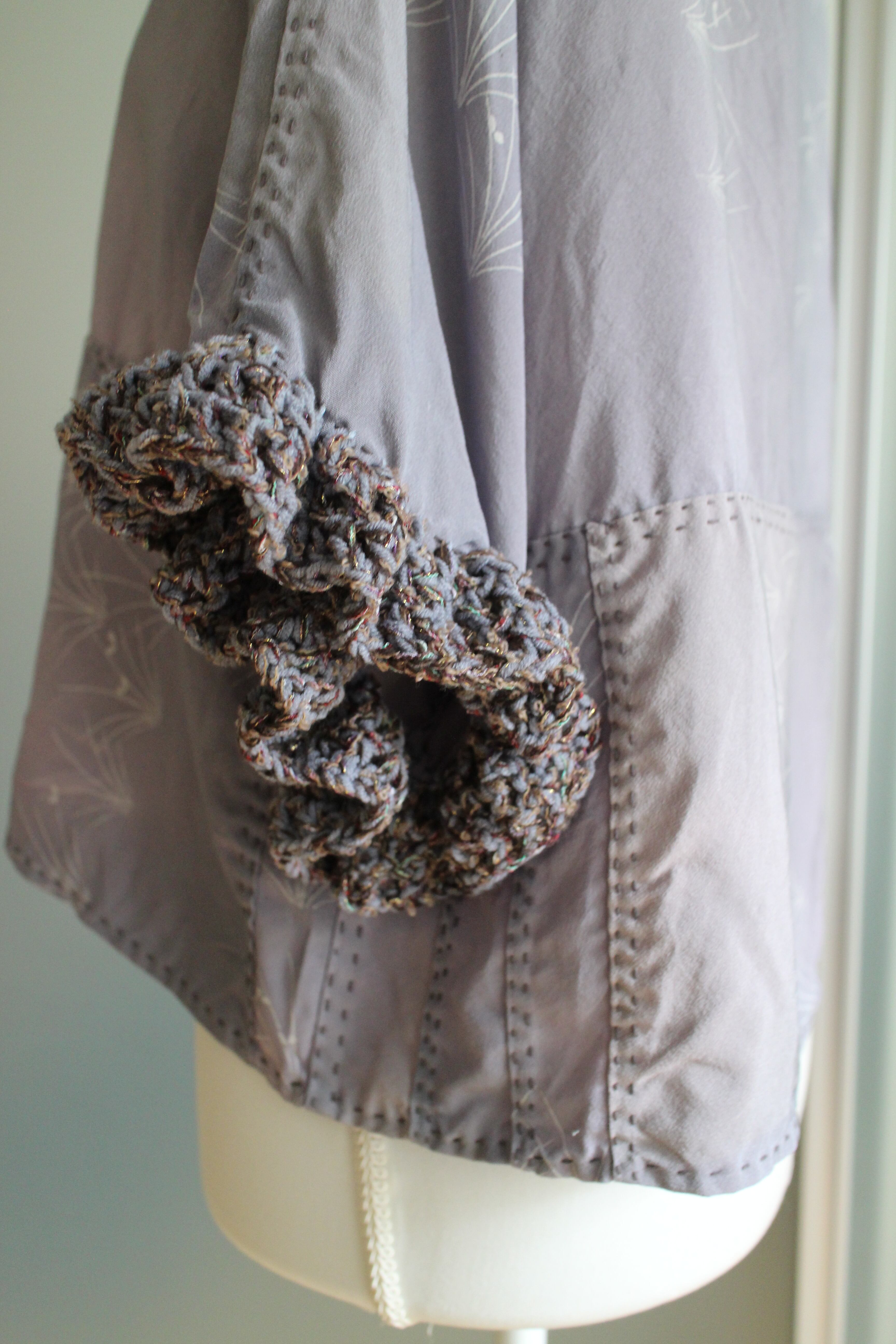 袖には毛糸で装飾を施しています。