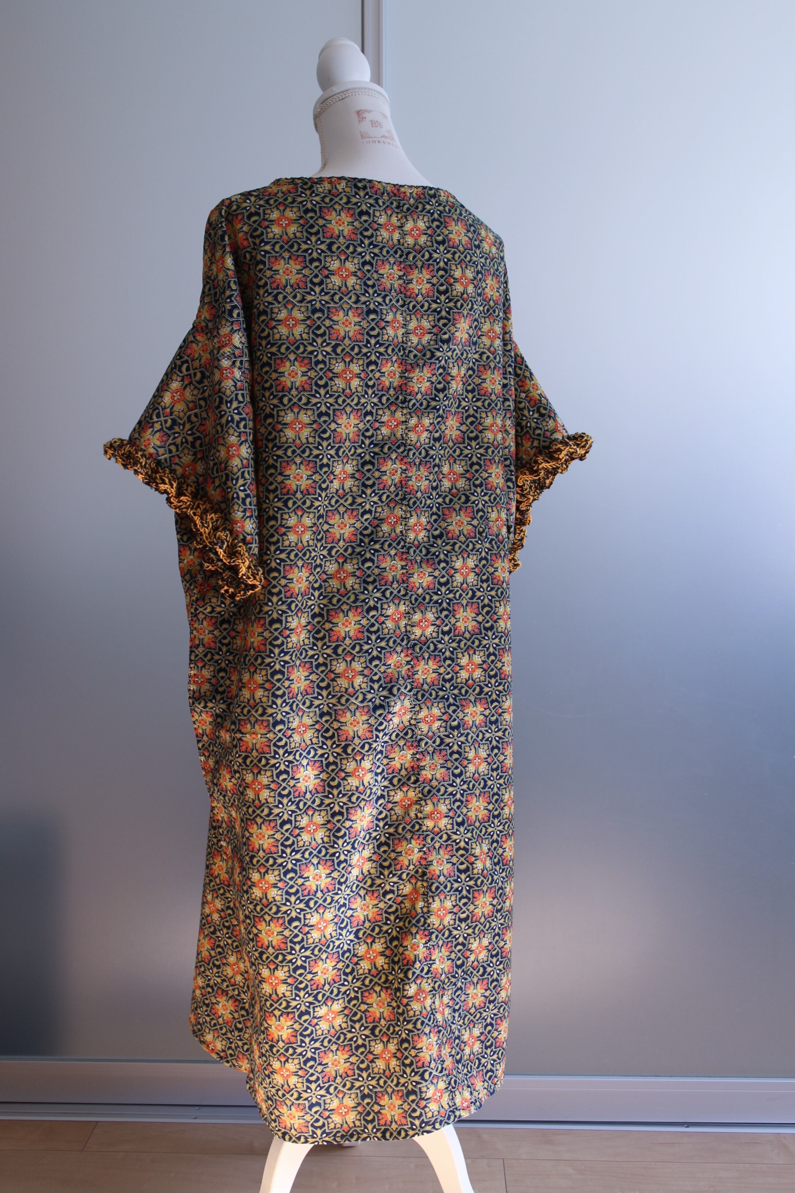 ヴィンテージの着物生地を使用したリメイクワンピースです。