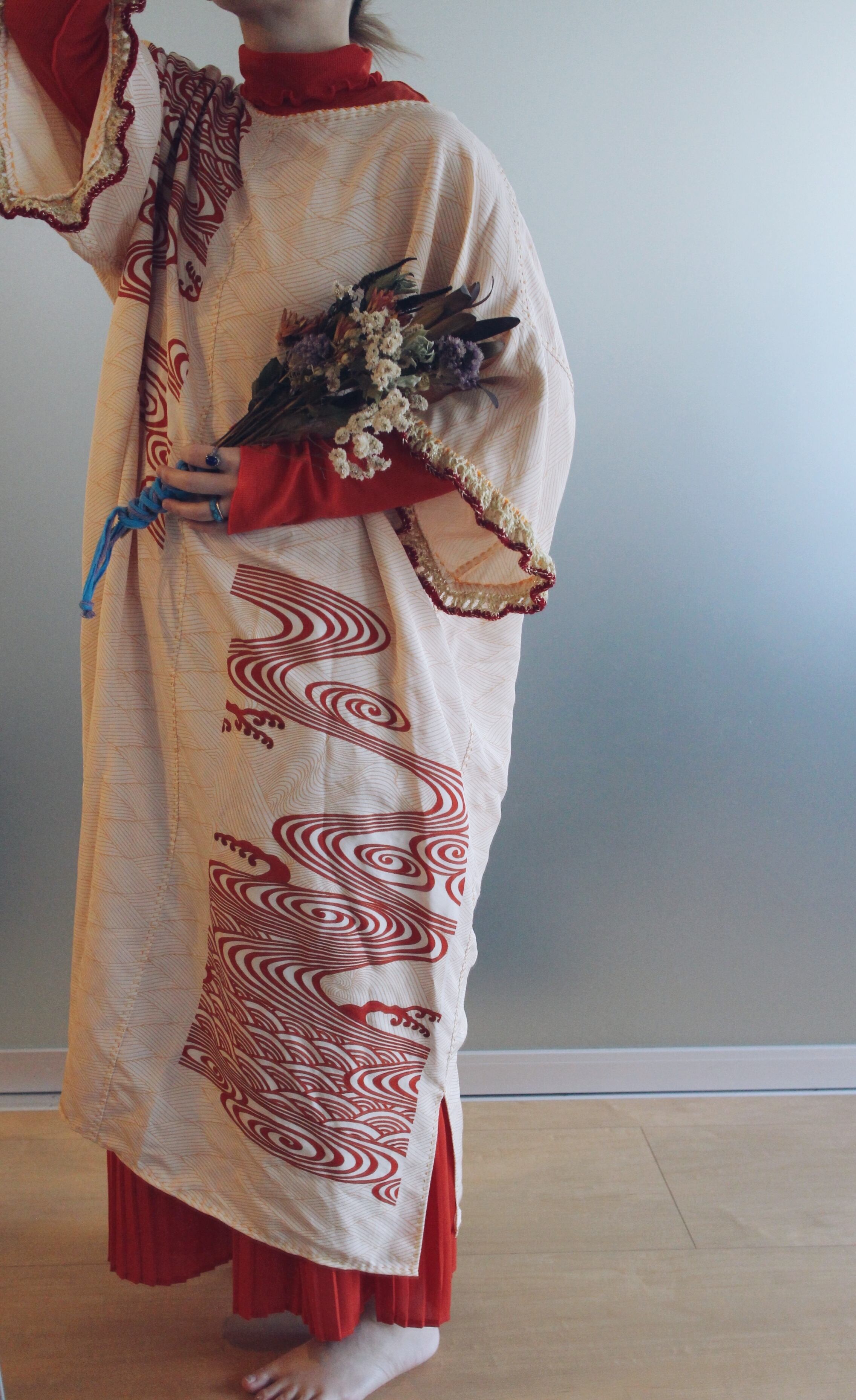 ゆったりと着れて、一着で存在感あるデザインです。一点物です。