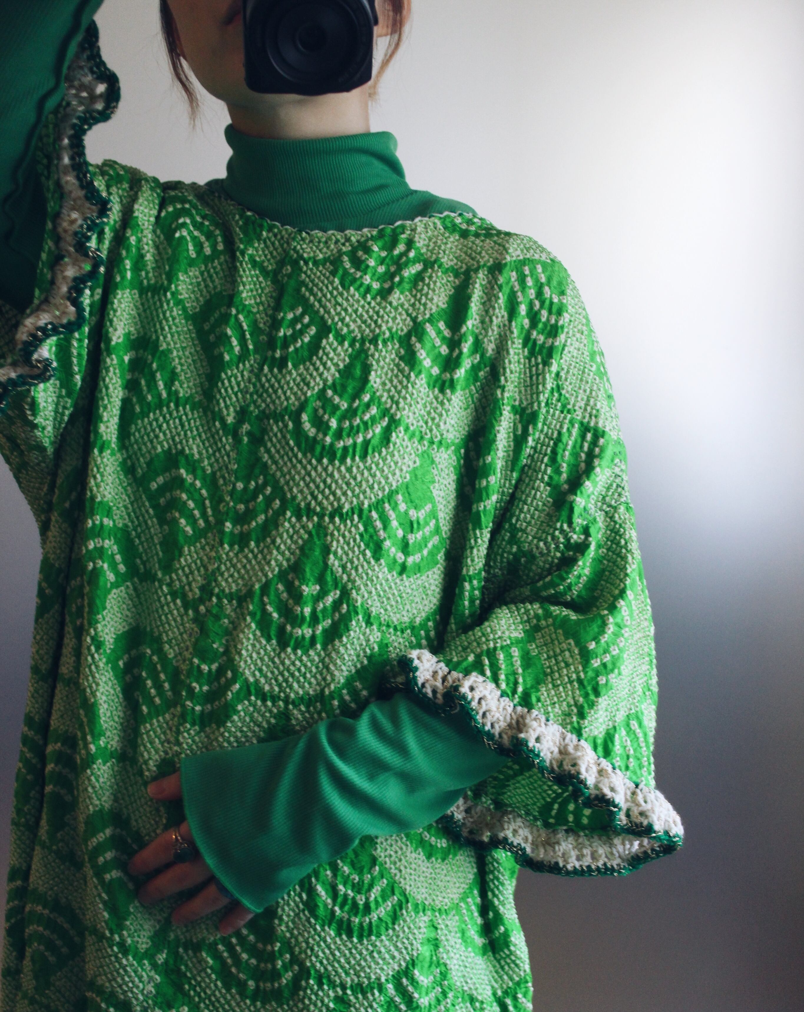 ゆったりと着れて、一着で存在感あるデザインです。一点物です。