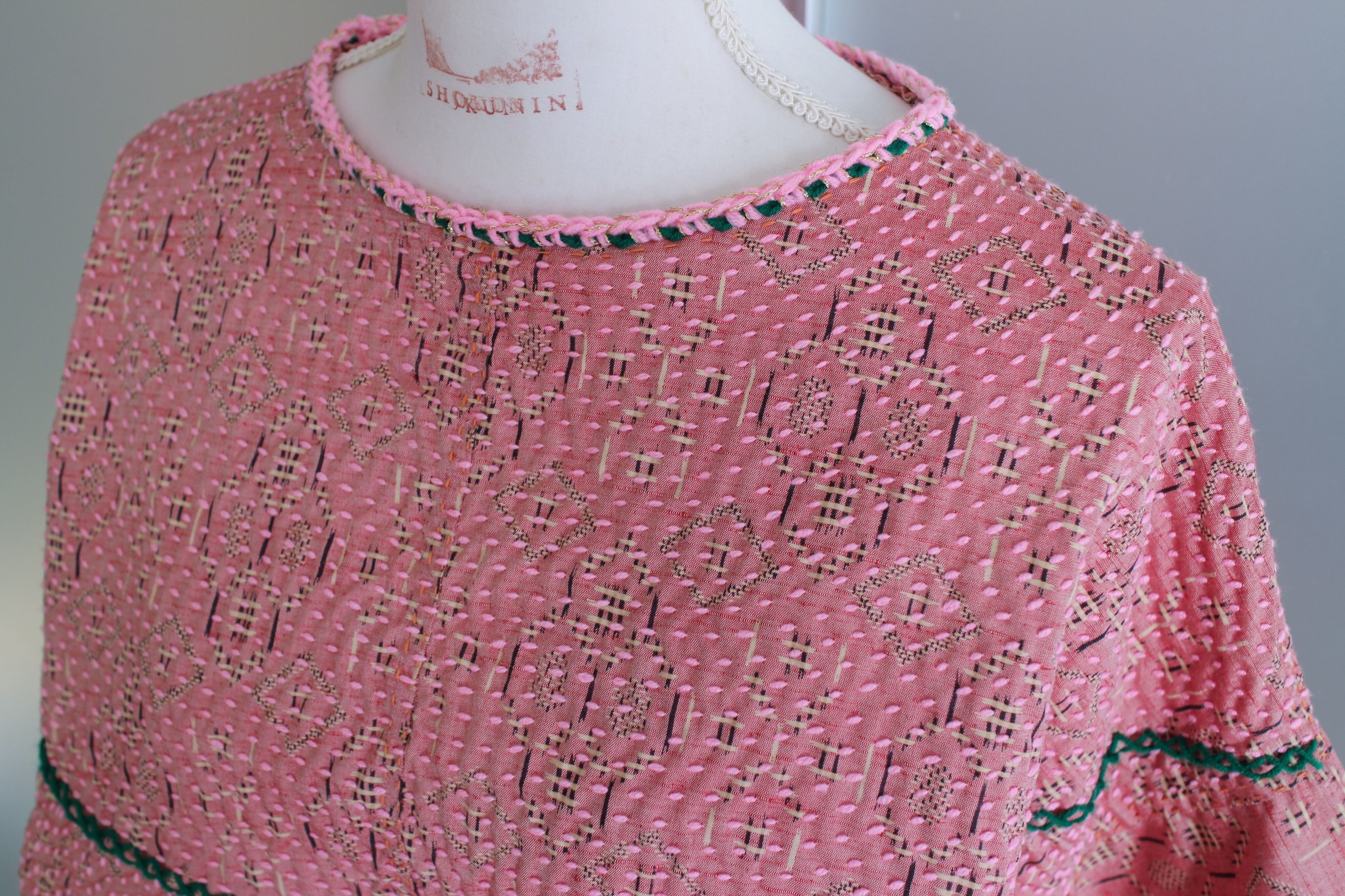 vintageの着物生地から製作したリメイクプルオーバートップスです。