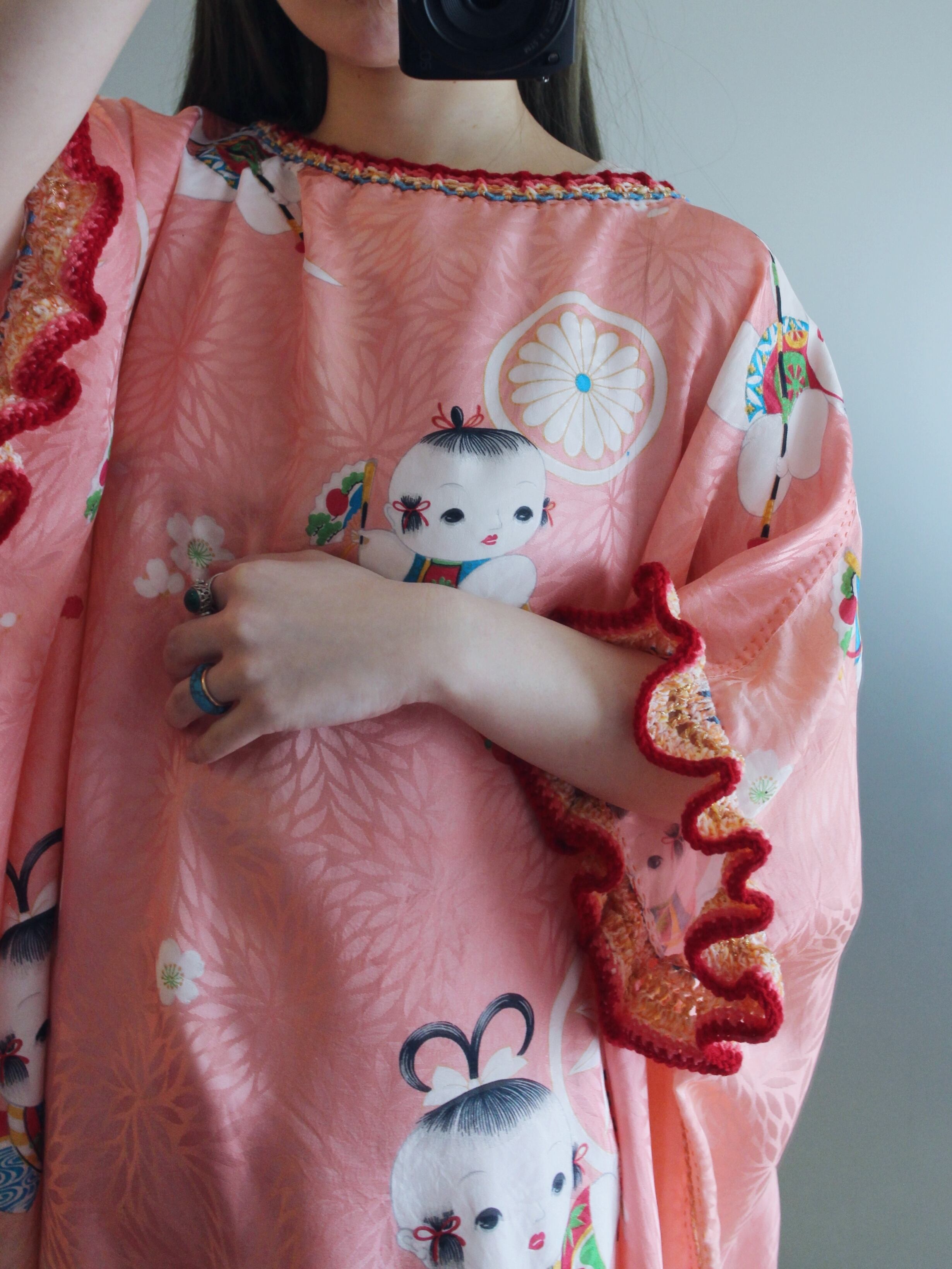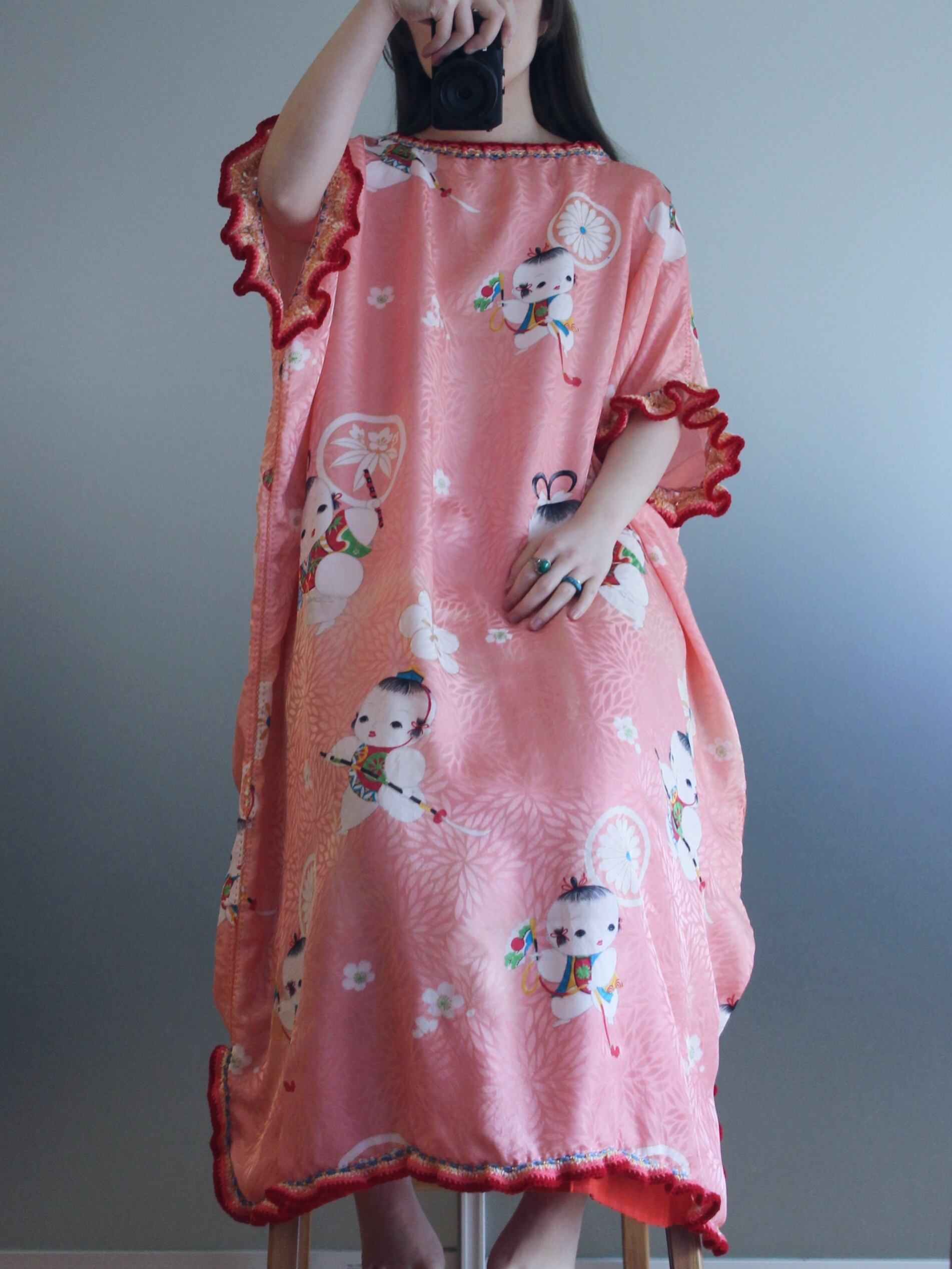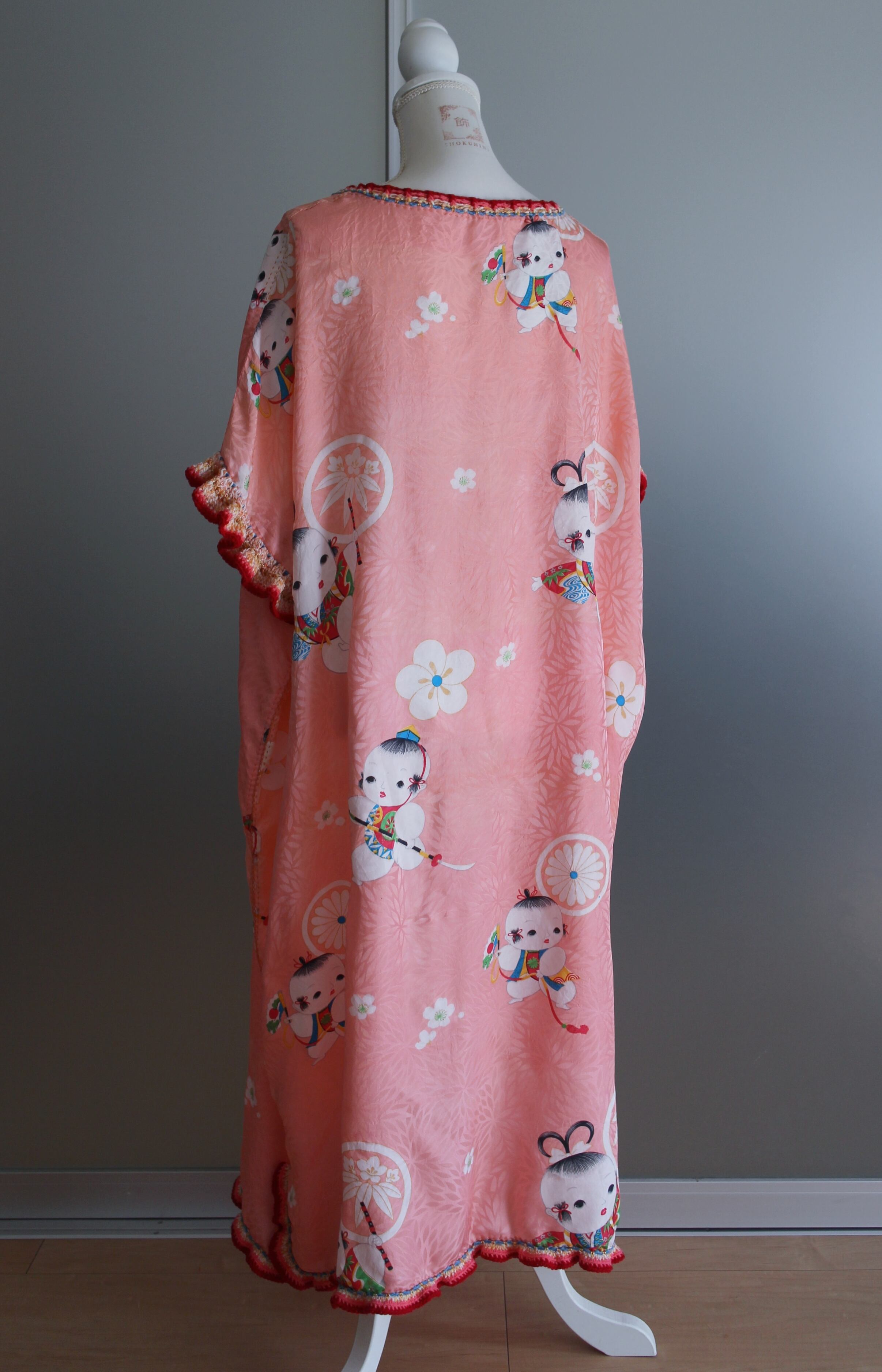 唐子柄の生地で製作したリメイクワンピースです。
