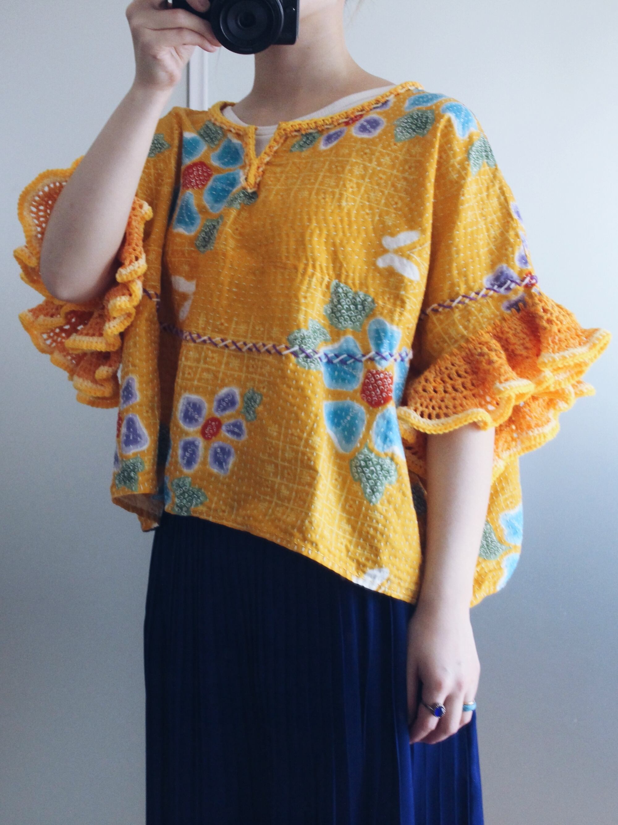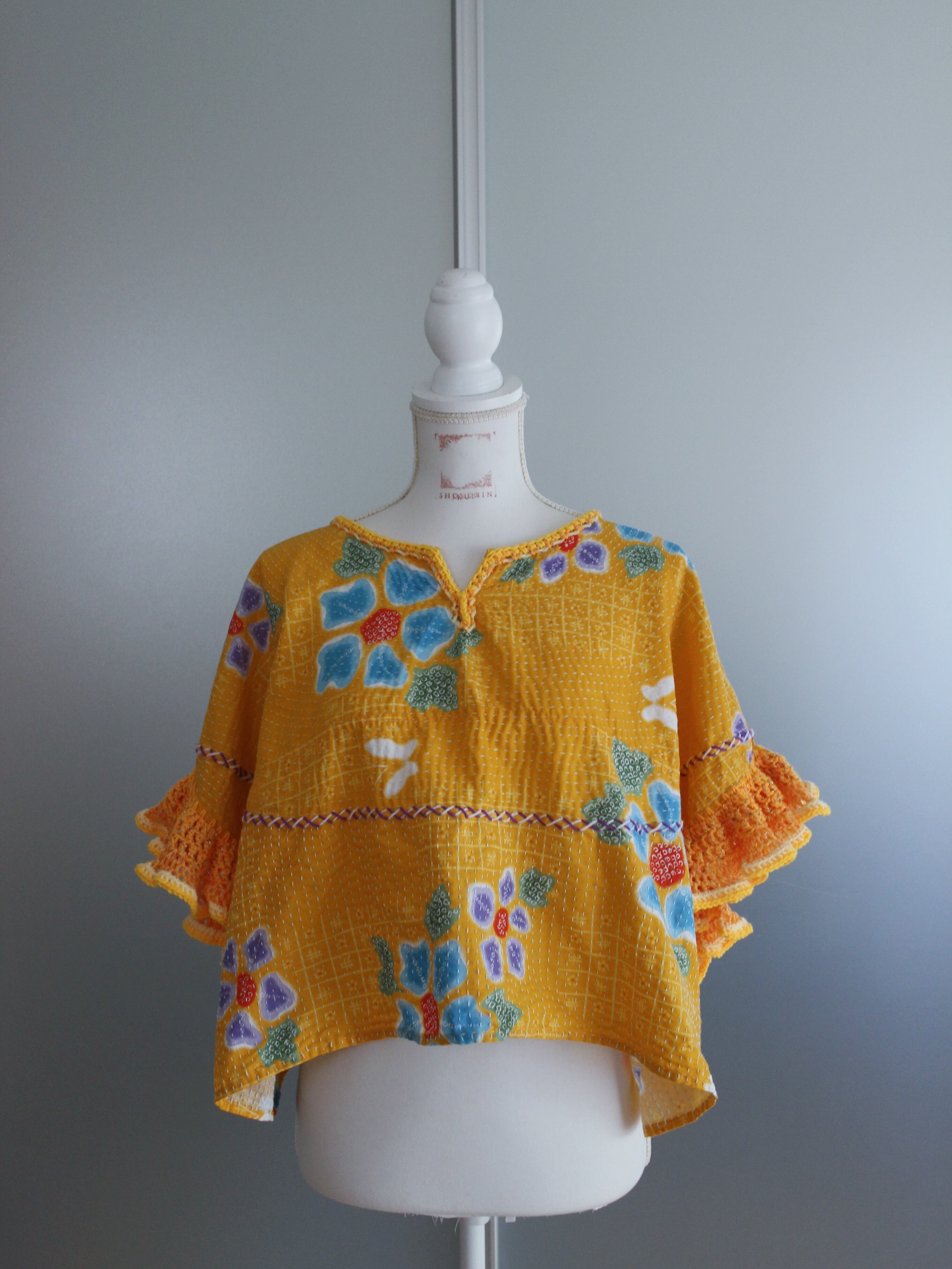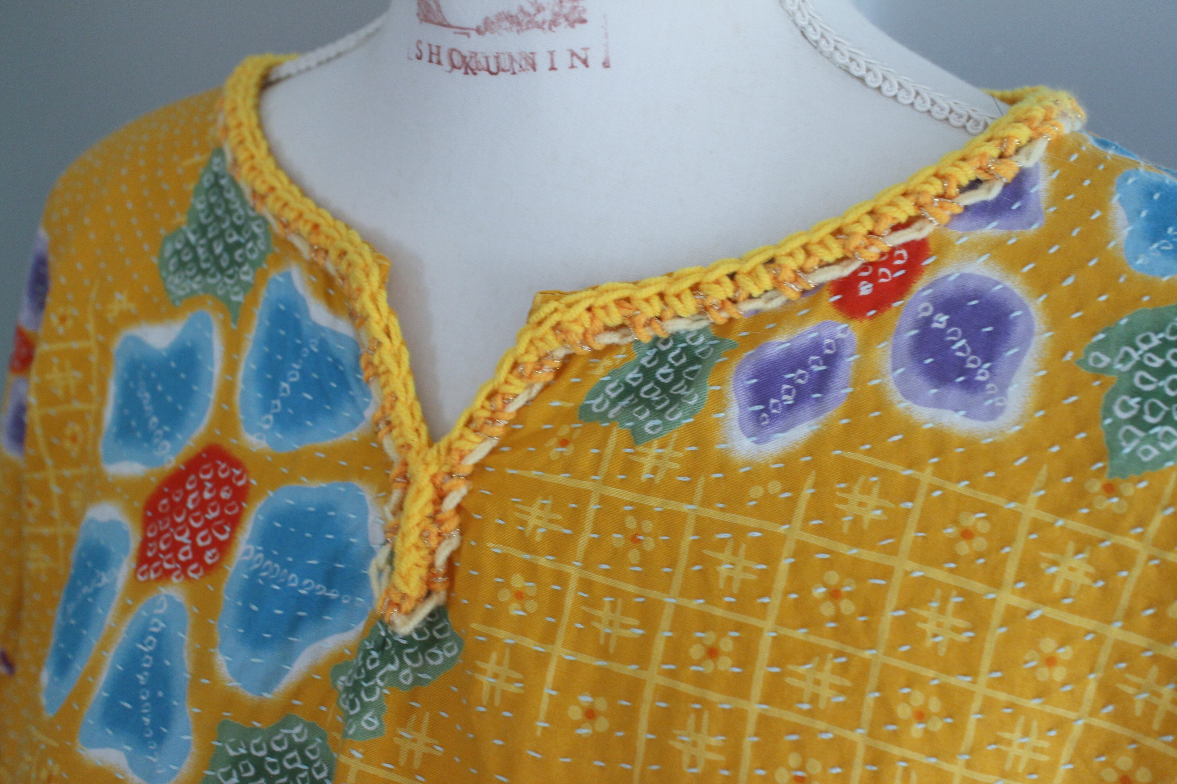 yukata fabric/sashiko crochet tops