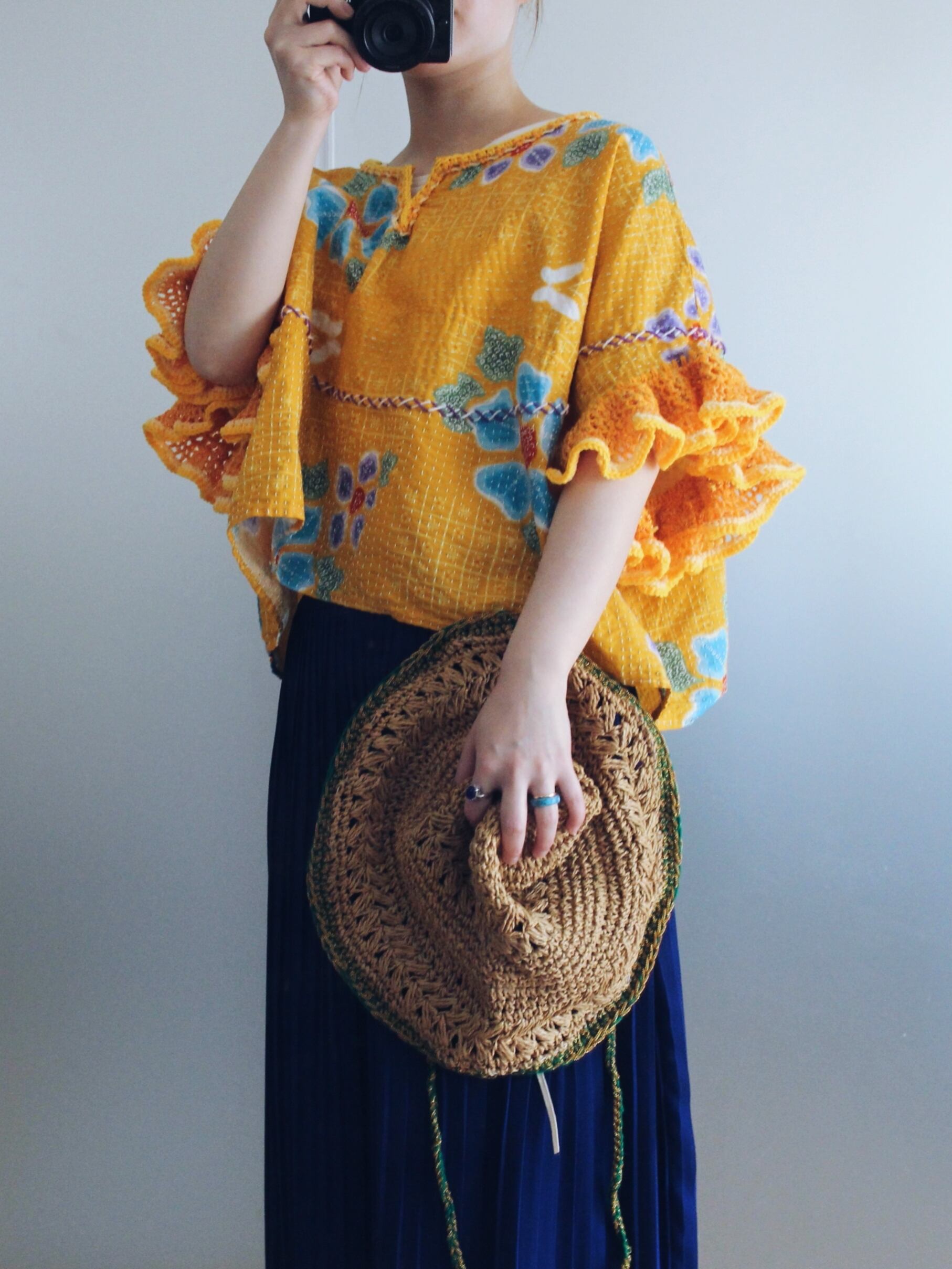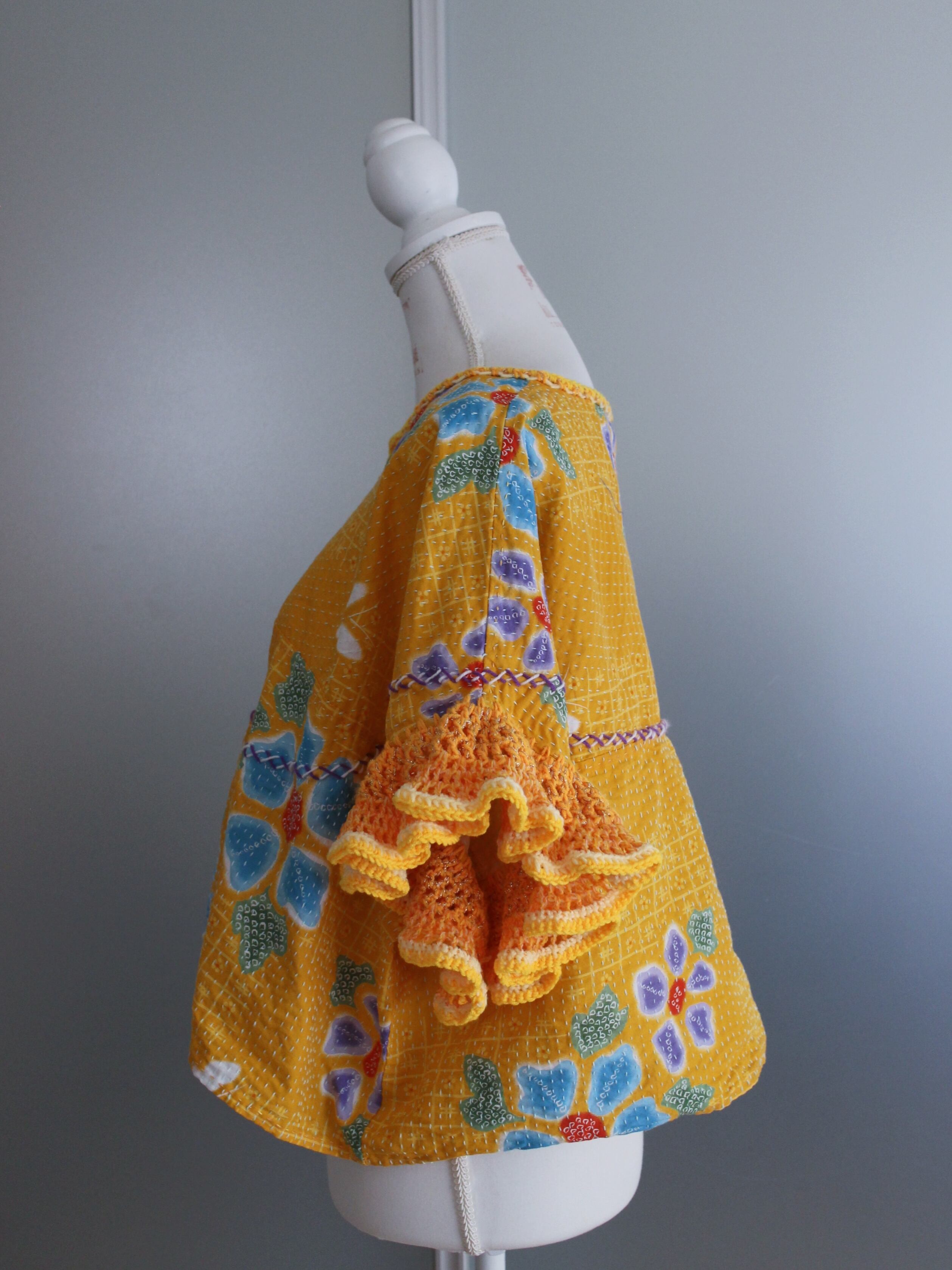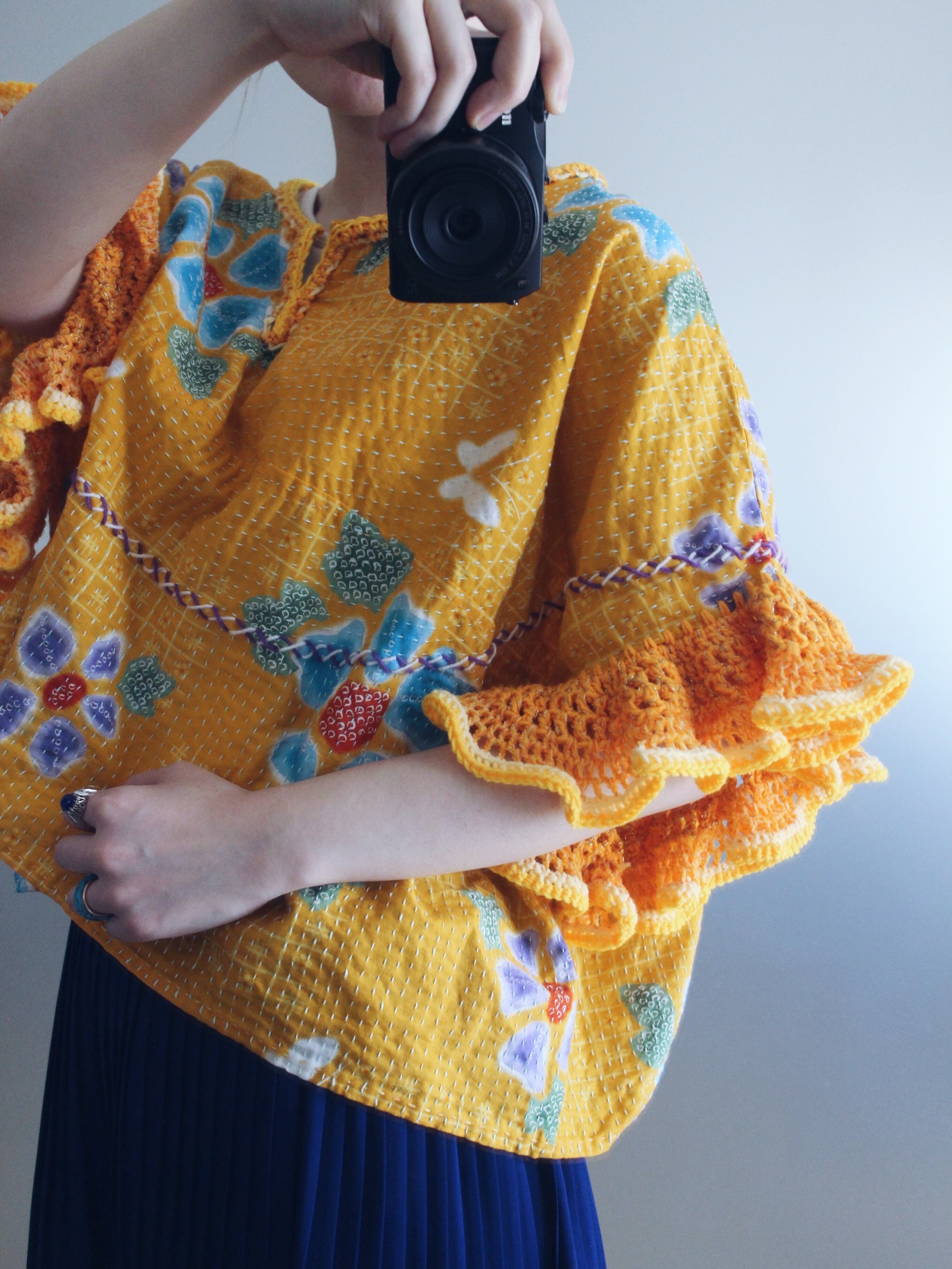 yukata fabric/sashiko crochet tops