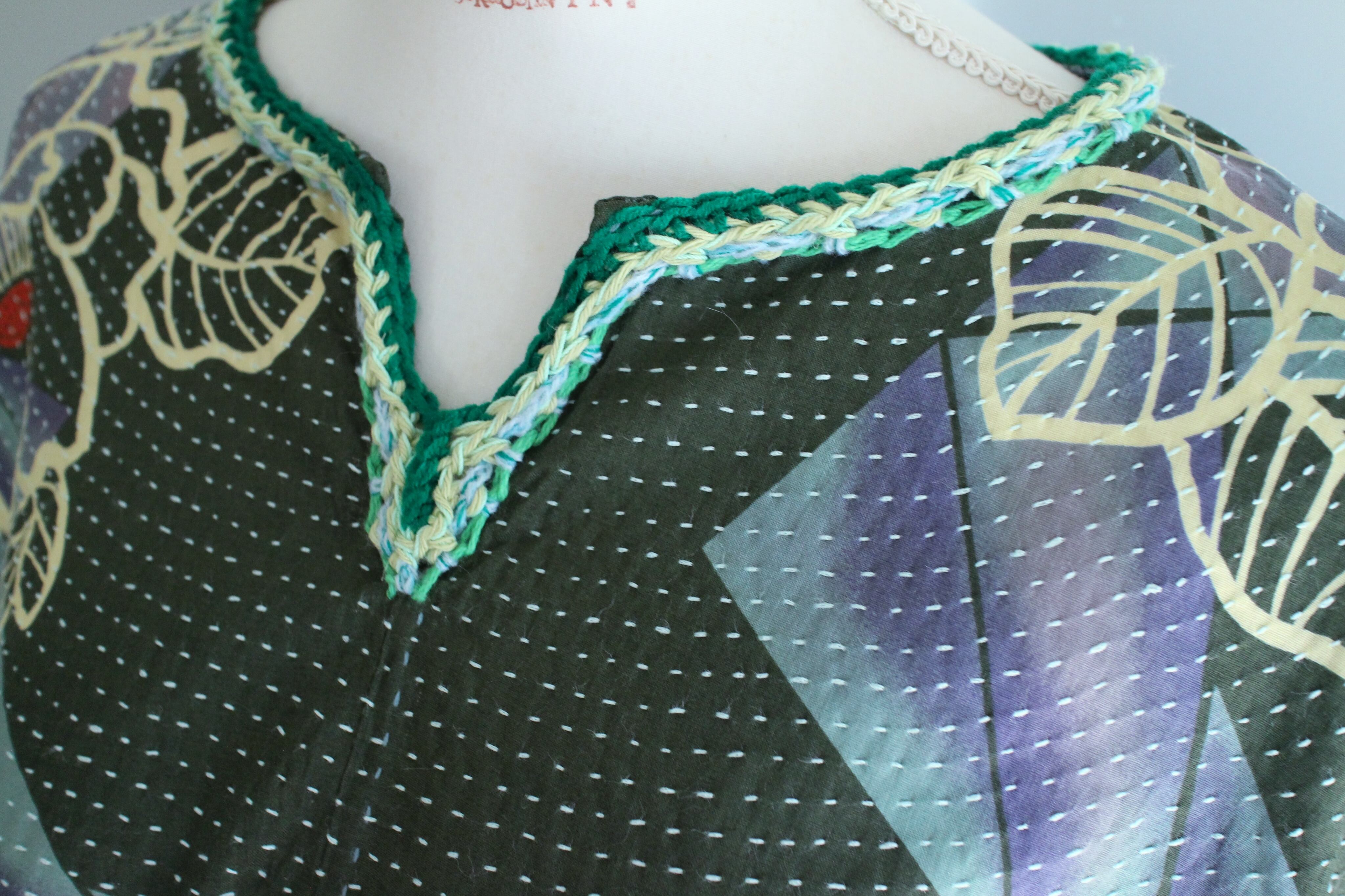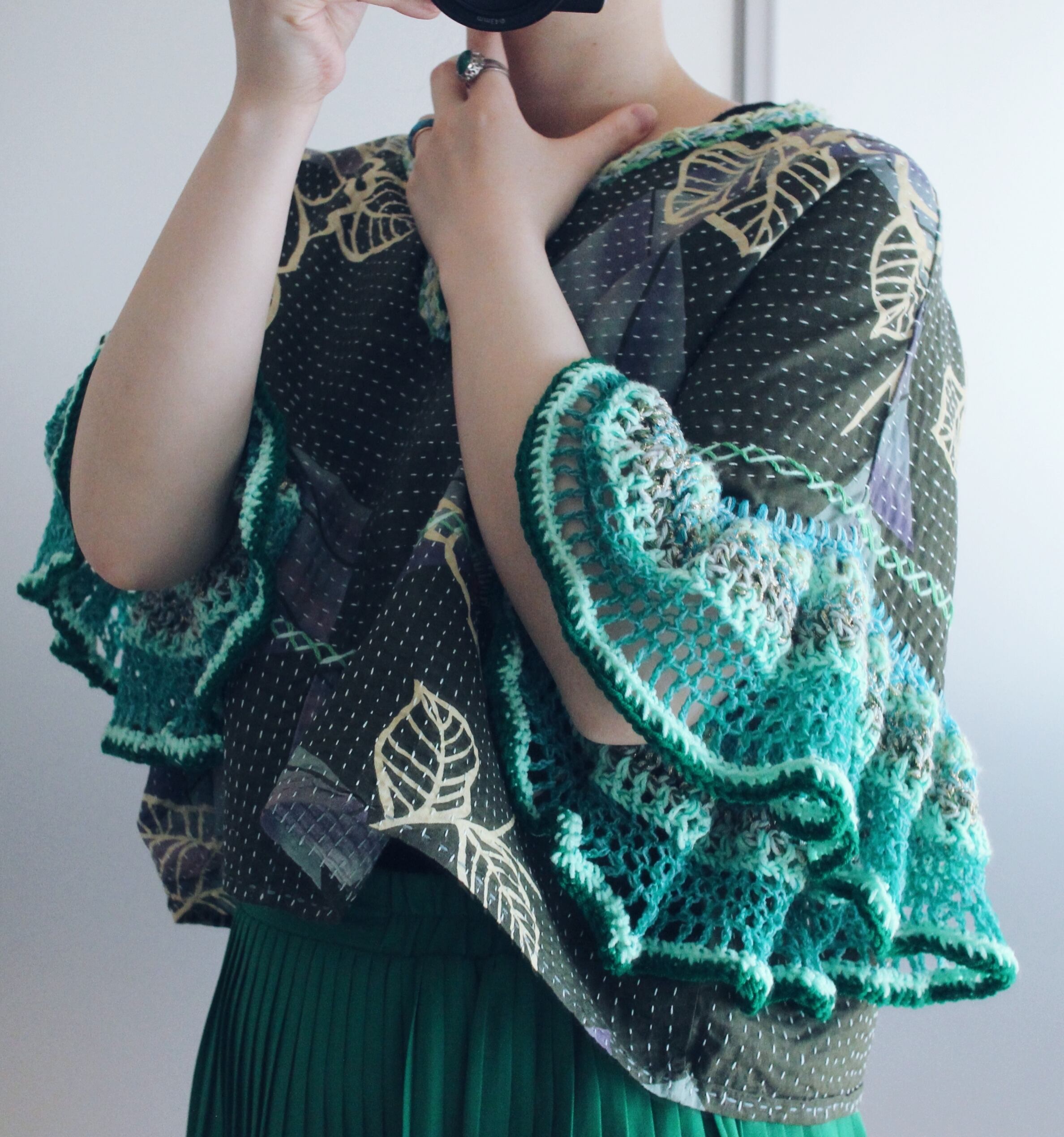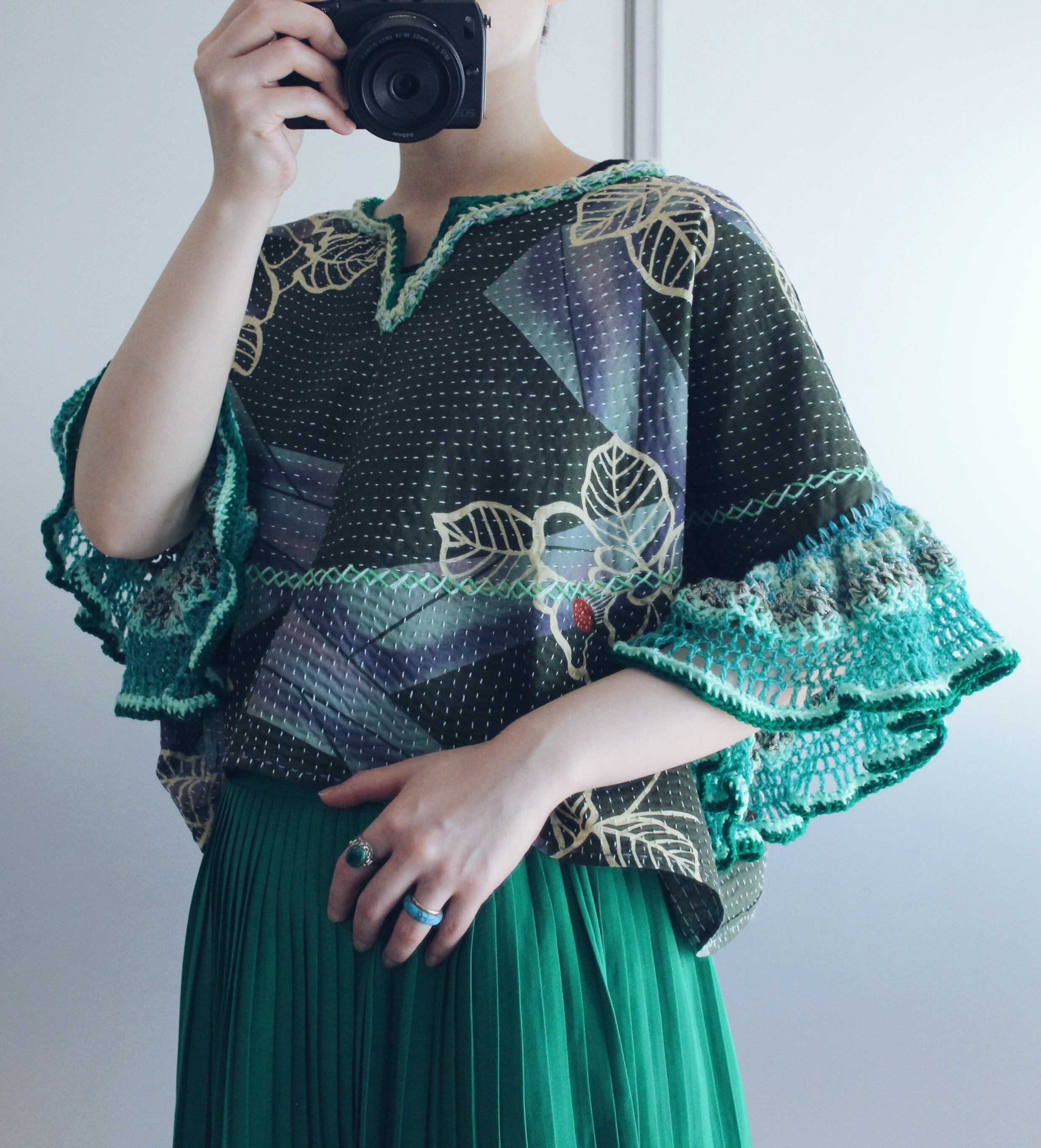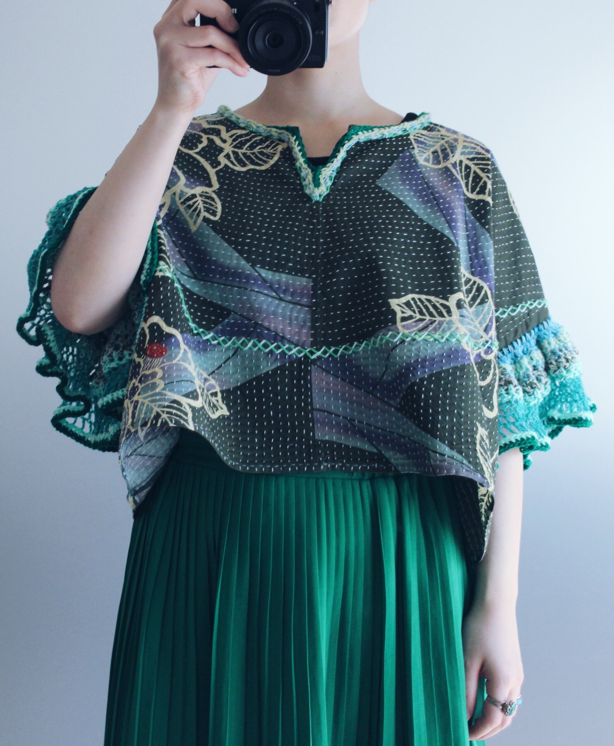 浴衣生地を使用した刺し子かぎ編みトップスです。