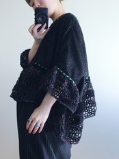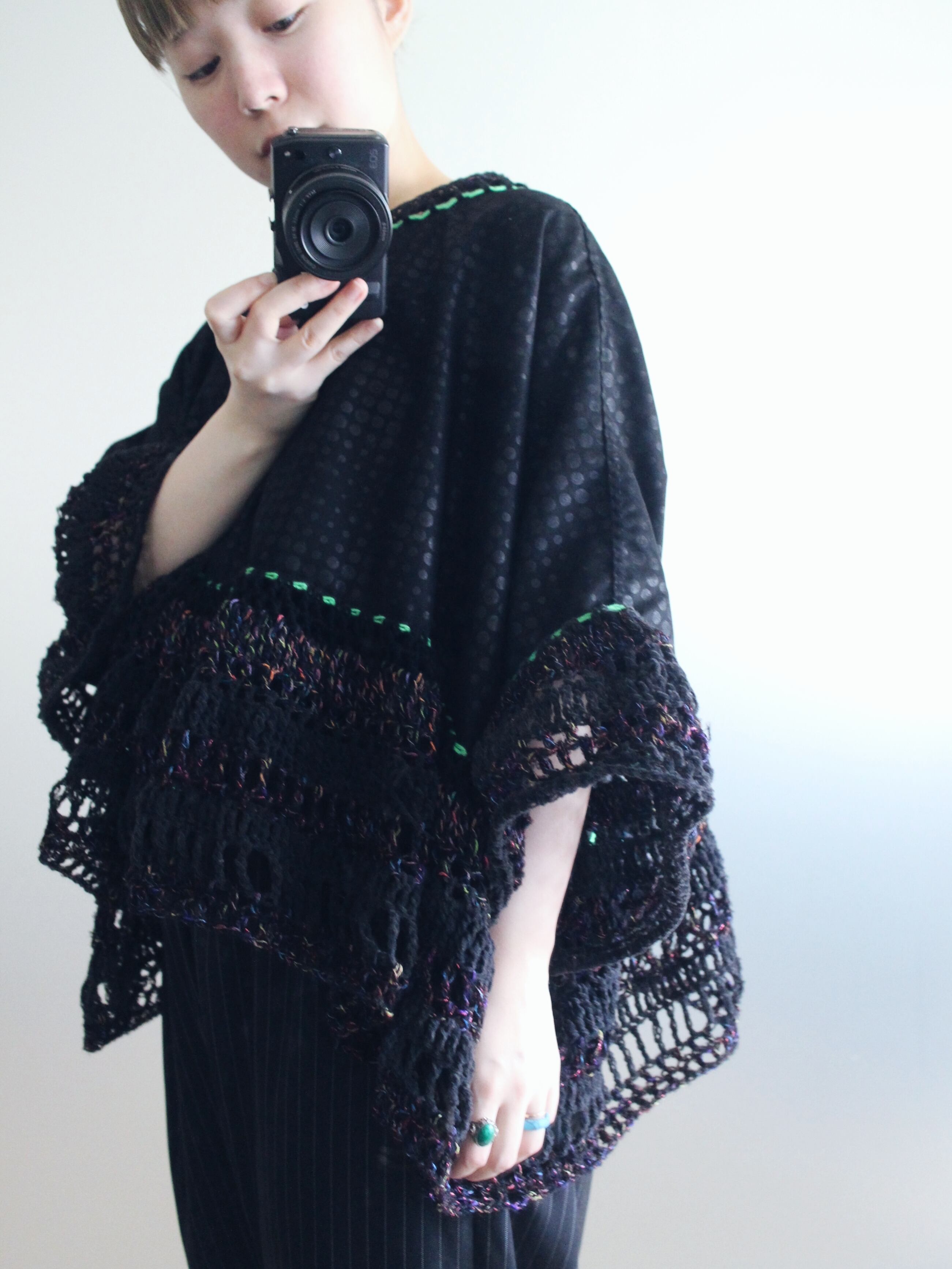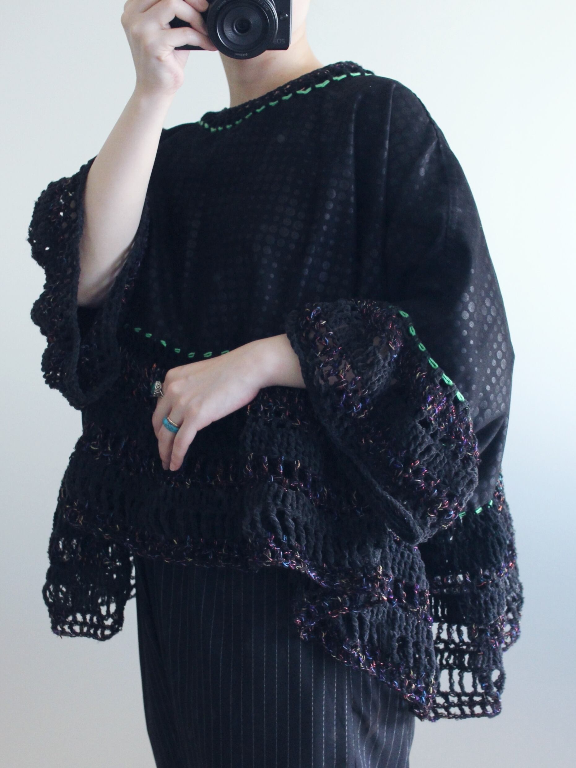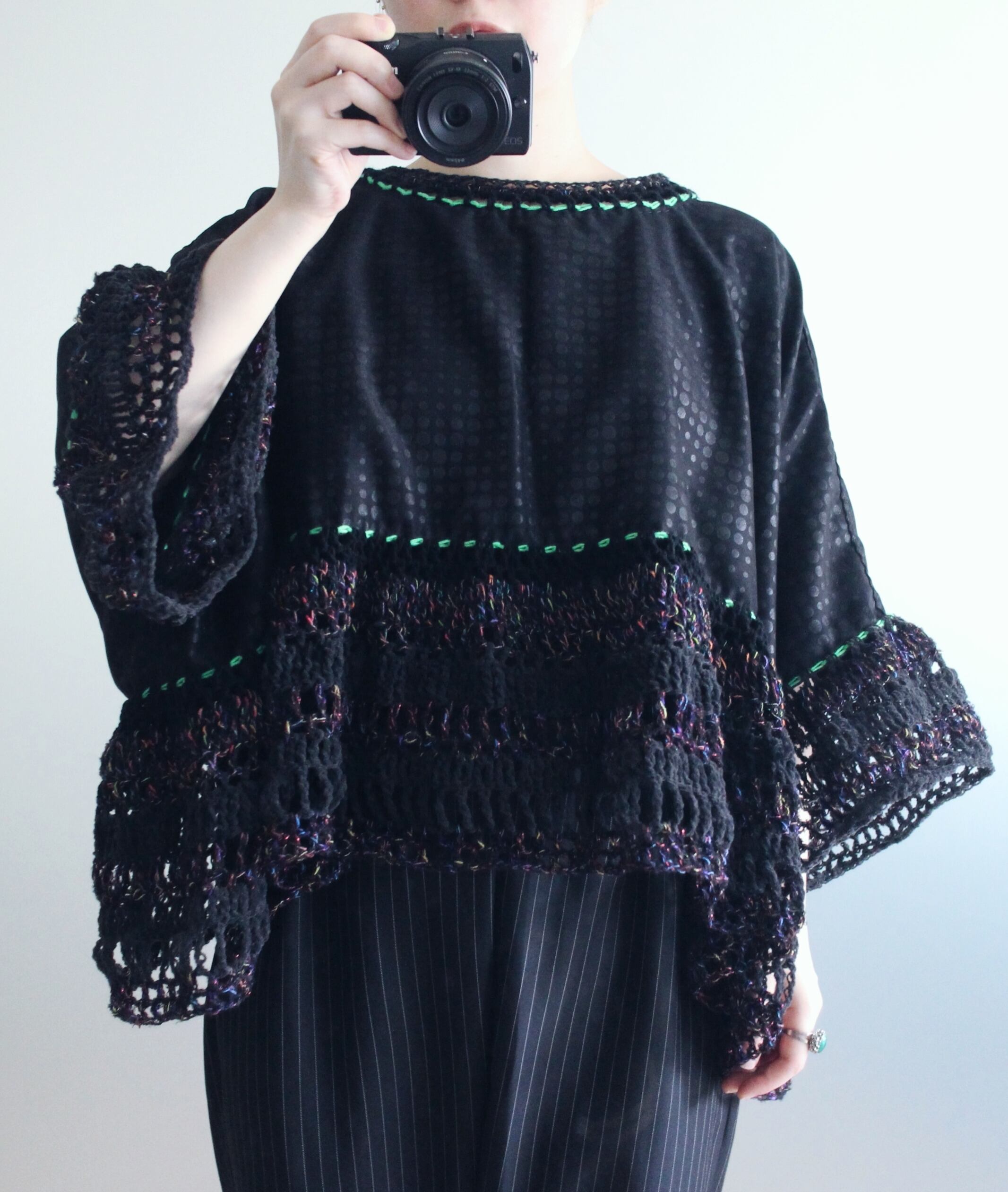 mannami kana(Bun Suzuki)氏によるオリジナルテキスタイル生地をたっぷりの毛糸で装飾したリメイクトップスです。