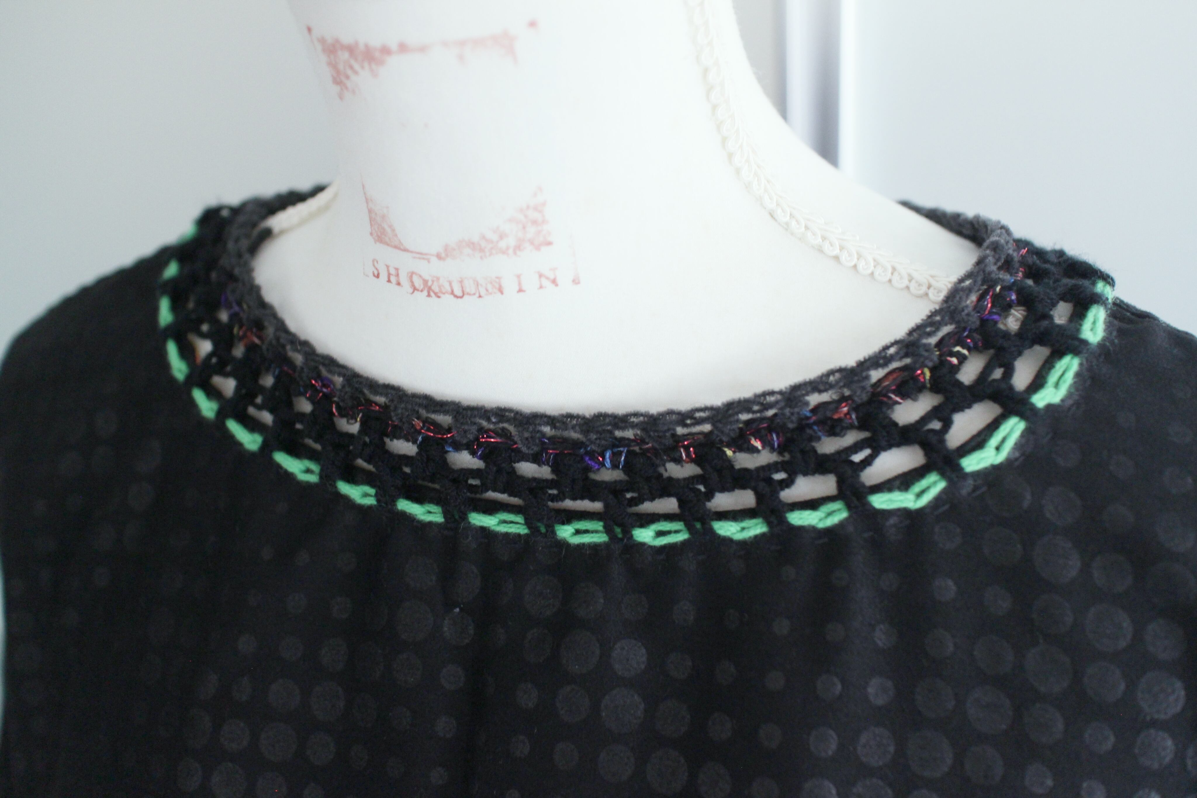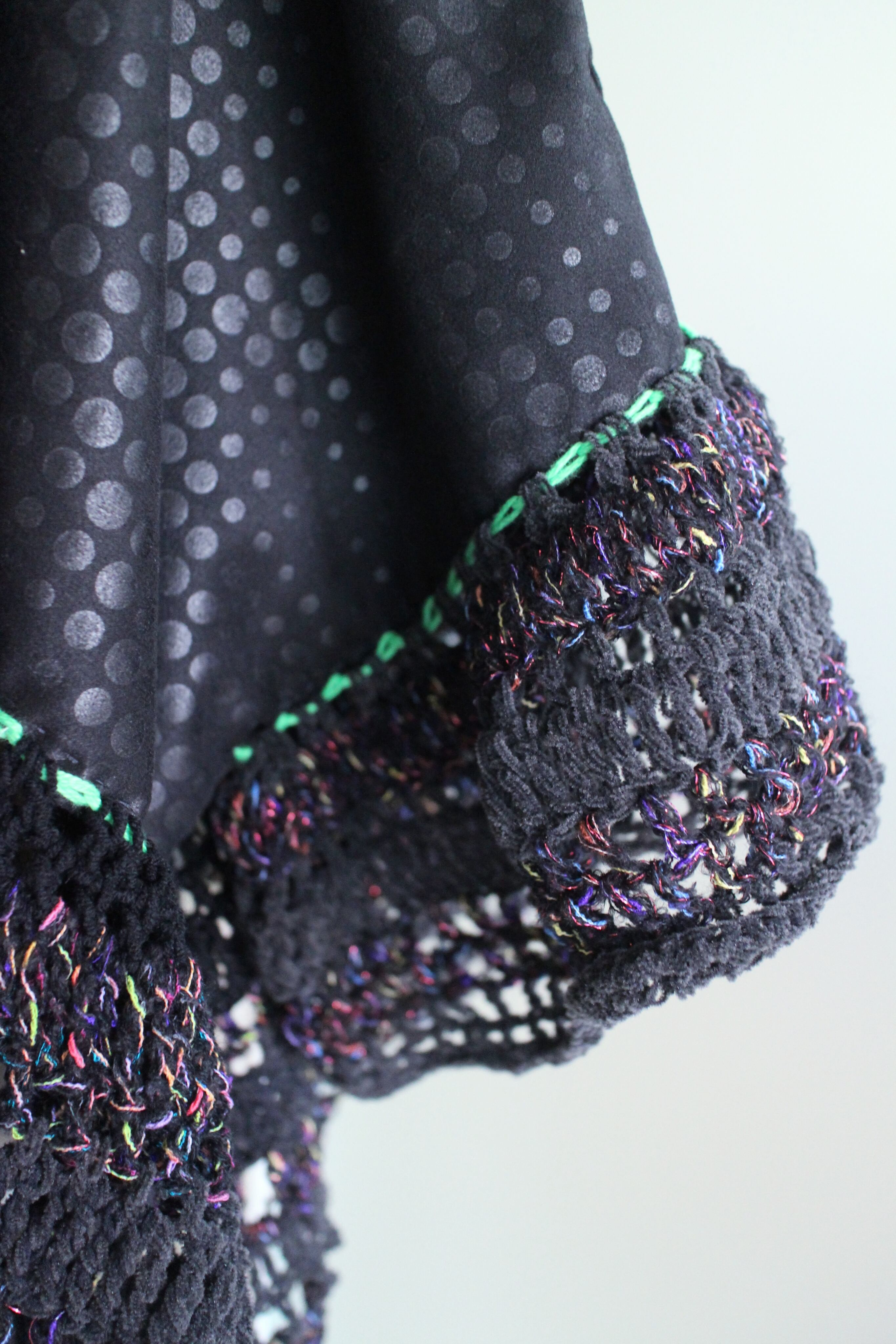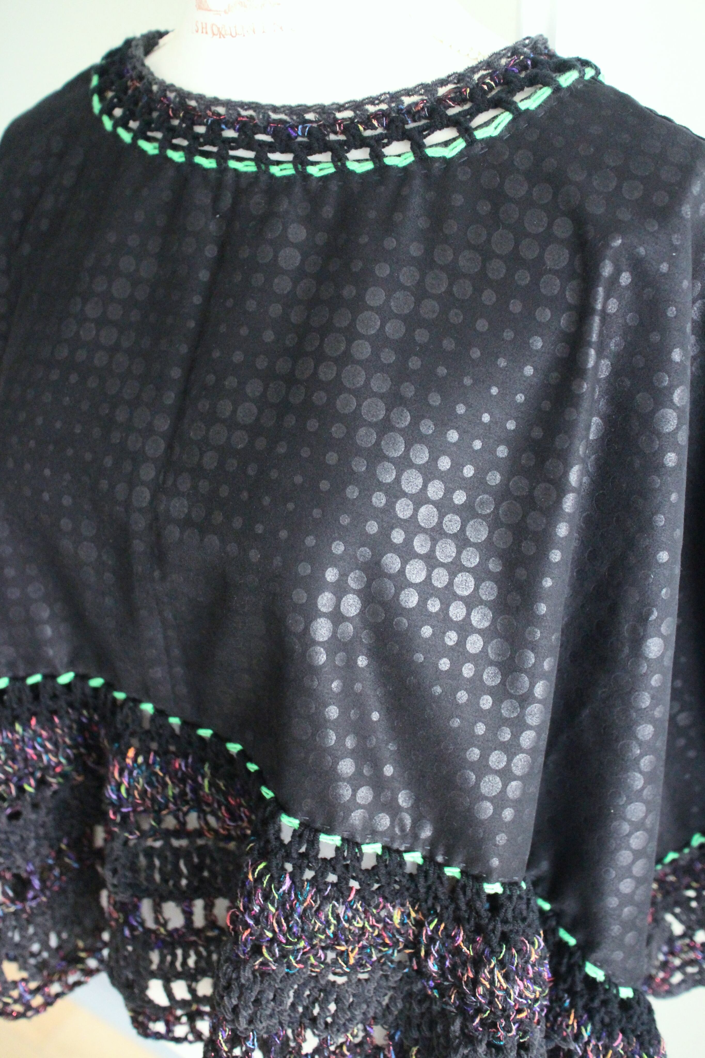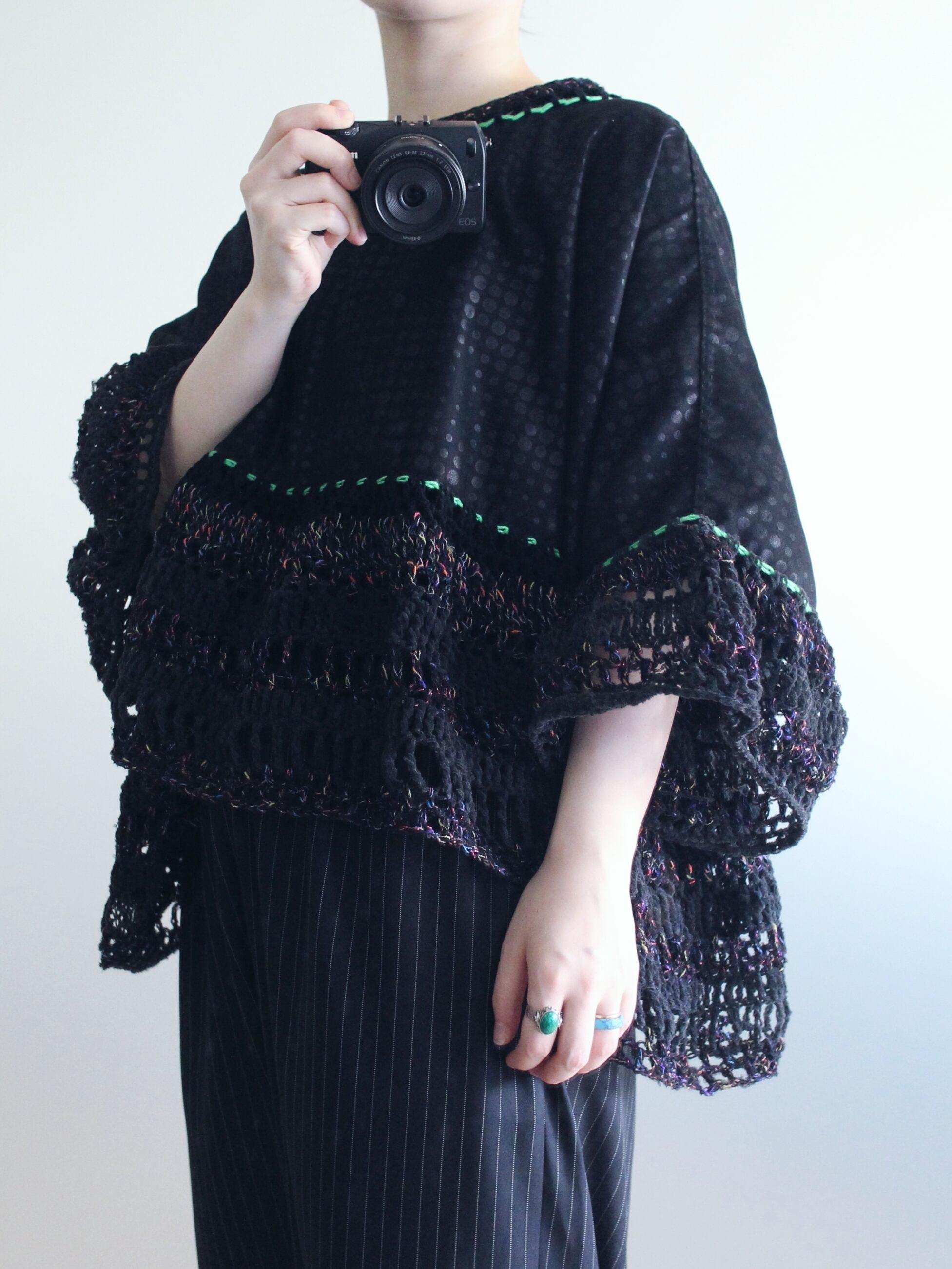 mannami kana(Bun Suzuki)氏によるオリジナルテキスタイル生地をたっぷりの毛糸で装飾したリメイクトップスです。